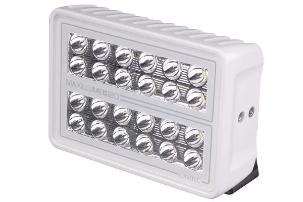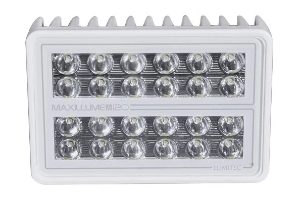 The new Maxillume h120 is poised to set a new standard in DC powered marine LED flood lighting. Delivering more than 12,000 TRUE lumens and housed in powder coated heavy duty aluminum housing, this light is engineered to work hard. Designed to replace the ubiquitous GE "QF" series of quartz floodlights, tested to withstand vibration and shock and completely water sealed (IP67 compliant). The Maxillume h120 is the ultimate in marine LED flood lighting, built for the roughest sea and toughest of jobs. Each light is designed, hand assembled and tested at our USA manufacturing facility. Note: This is a DC powered light. Not for AC applications