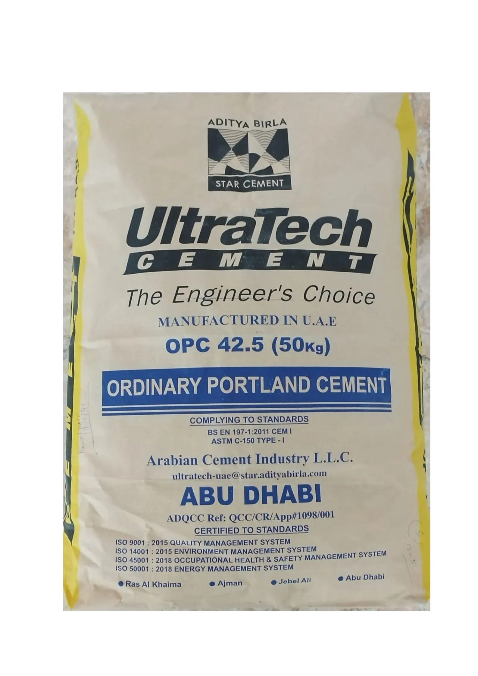 Ordinary Portland Cement (OPC). •High strength cement. •Work combines with water, sand and stone capable of bearing great loads. •UltraTech produces OPC cement of two grades - 43 and 53. •50kg Standard. Minimum quantity 150 bas according to delivary location and quantity/Shipping cost will be Apply/Tanker cement available on Customer Request. Website Pricing: Some product prices are subject to change and may vary from the actual price. Delivery Options: We have delivery “charge” depending on your location & on order values. Delivery by 2-5 days