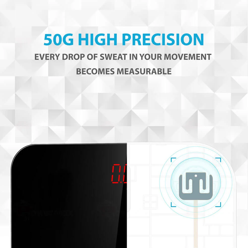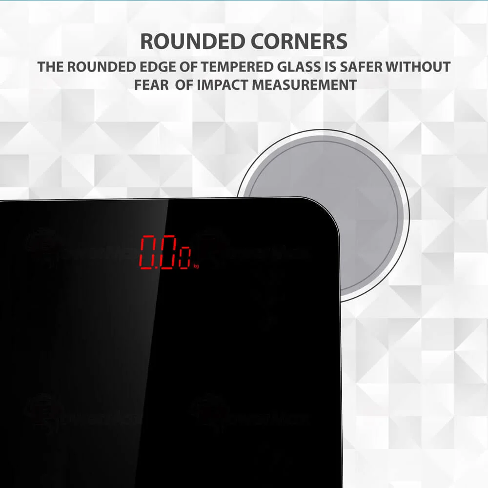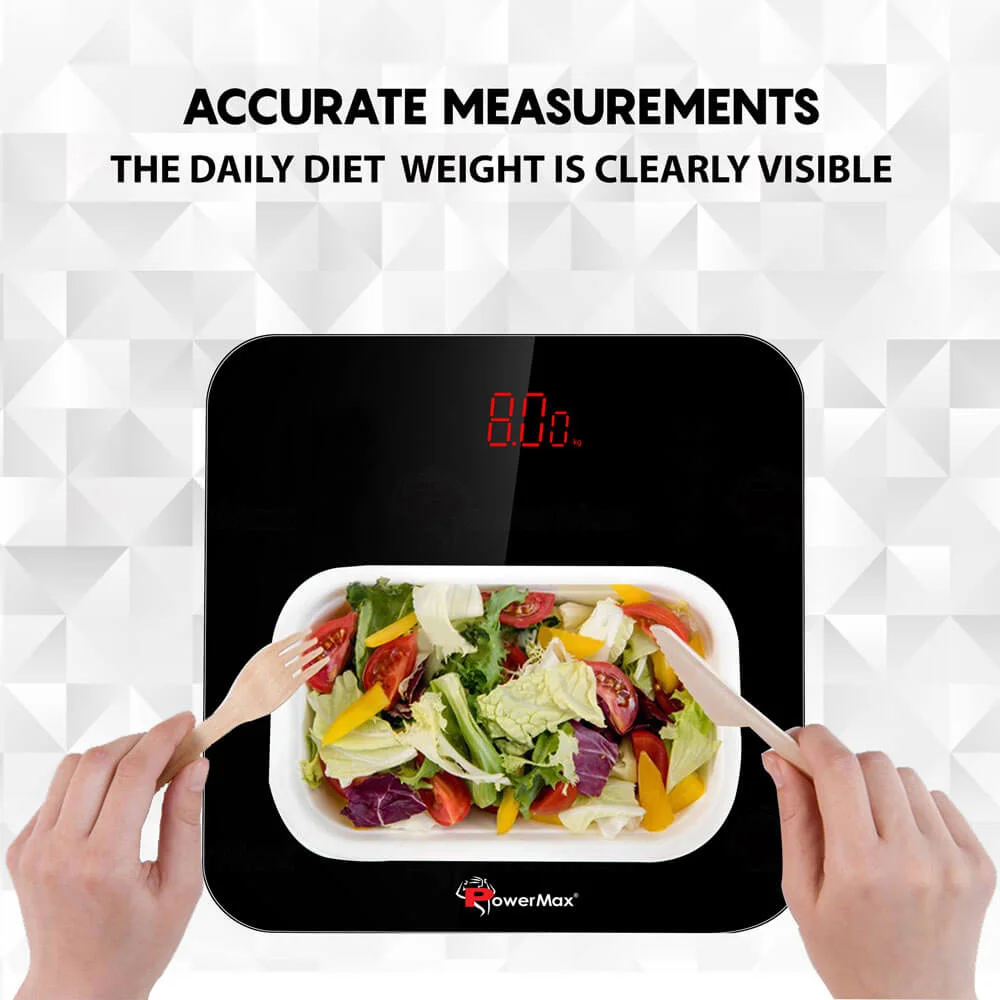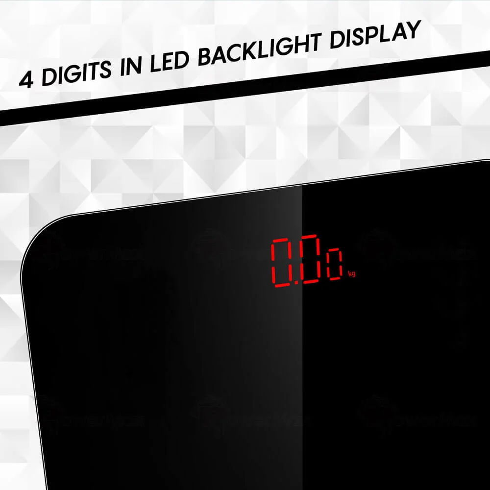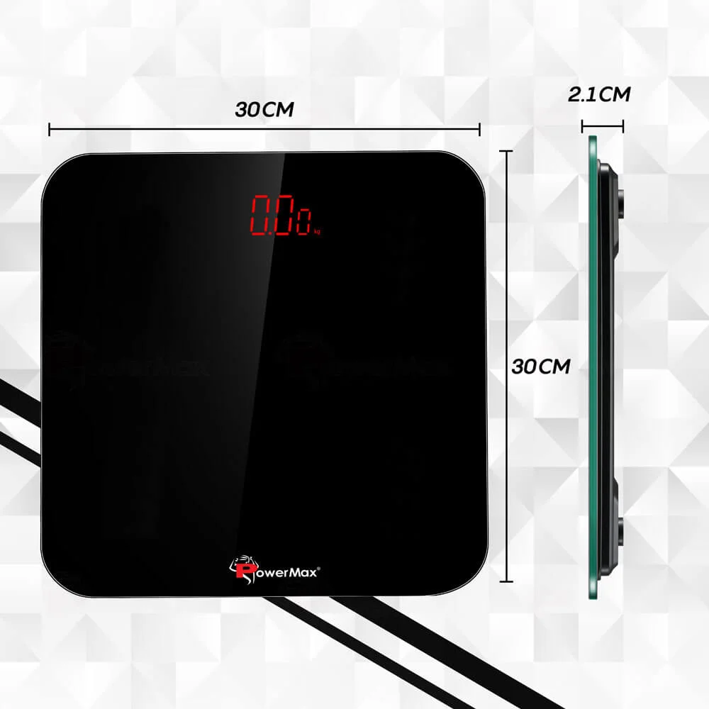 PowerMax FitnessÂ®ï¸ Digital Weight Machine for Human Body - High Accuracy Bathroom Weighing Scale with Step-on Technology & Super Durable 6mm Tempered Glass (BSD-5) 4 Digits in LED Display Weight units: KG, LB, ST ABS Plastic Part, 4 Tempered Glass Platform Max User Weight: 180KG /396LB Division: 100g
