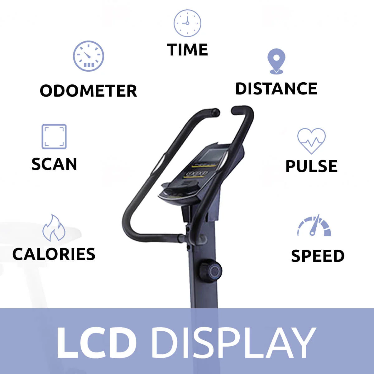 Maximize your fitness results with the BU-800 Magnetic Upright Bike. This indoor bike lets you get a pulse-pounding workout and keep careful track of your progress. The LCD display monitors distance, heart rate, calories burned, and more. The frame is made from heavy steel and utilizes a flywheel drive for a smooth, realistic ride. A magnetic resistance system provides up to 8 levels of intensity to vary your sessions. A padded, adjustable seat ensures your comfort and flywheel gives the smooth ride. It is a full, well-rounded workout that: - gradually get back in shape - works your heart, thereby increasing your endurance - tones the lower body muscles