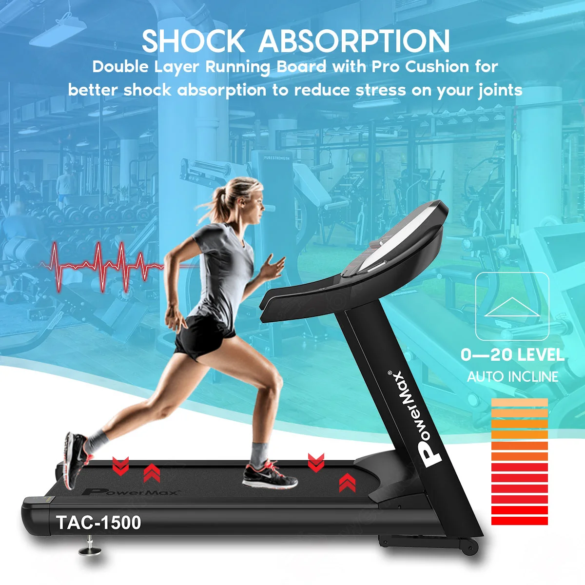 PowerMax Fitness TAC-1500 Commercial (6.0HP) AC Motorized Treadmill Running Machine for Max Pro-Workout & Fitness