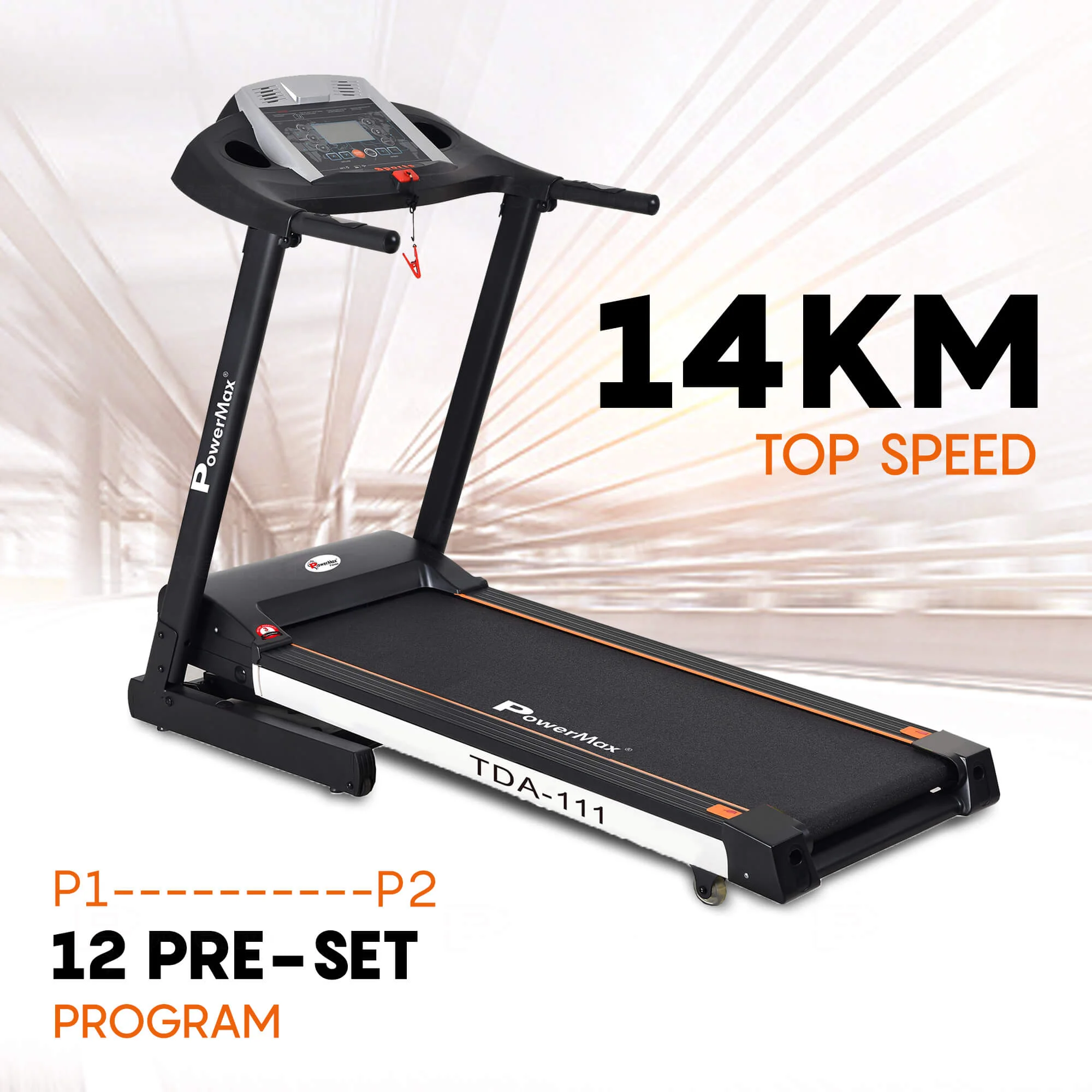 PowerMax Fitness TDA-111 (2.0HP) Motorized Treadmill with 5" Blue Screen for Home Gym