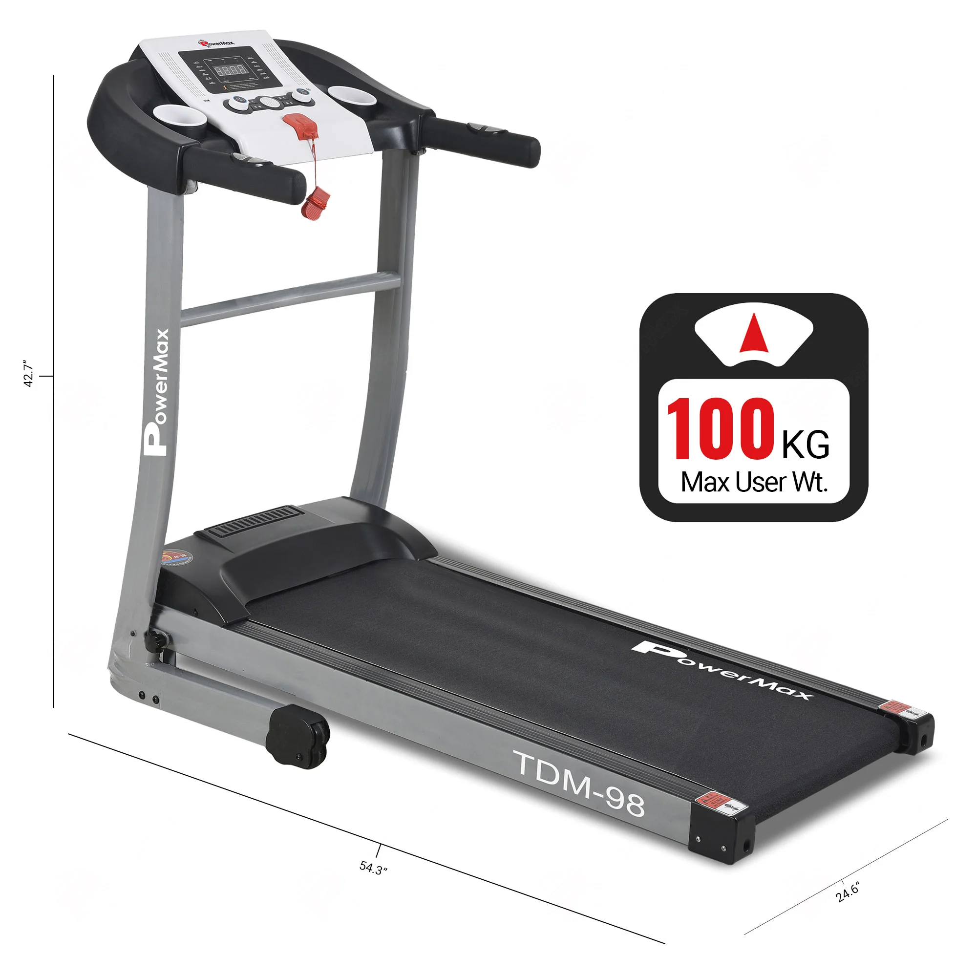 The Powermax Fitness TDM-98 1HP Motorized Treadmill that can be used at work as well as home and Space Saving with its compact and ideal design to fit in any one’s room, foldable to be stored near the shelf. TDM-98 treadmill has a built-in auto-stop function while running attach the safety clip to your clothes and run as normal, it will auto stop if you fall or drift back dangerously on the treadmill, the auto-stop function minimizes the risk of injury.