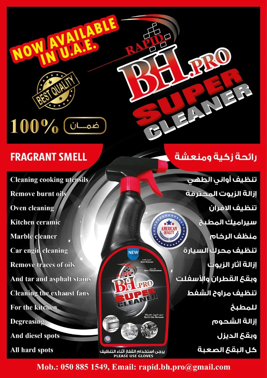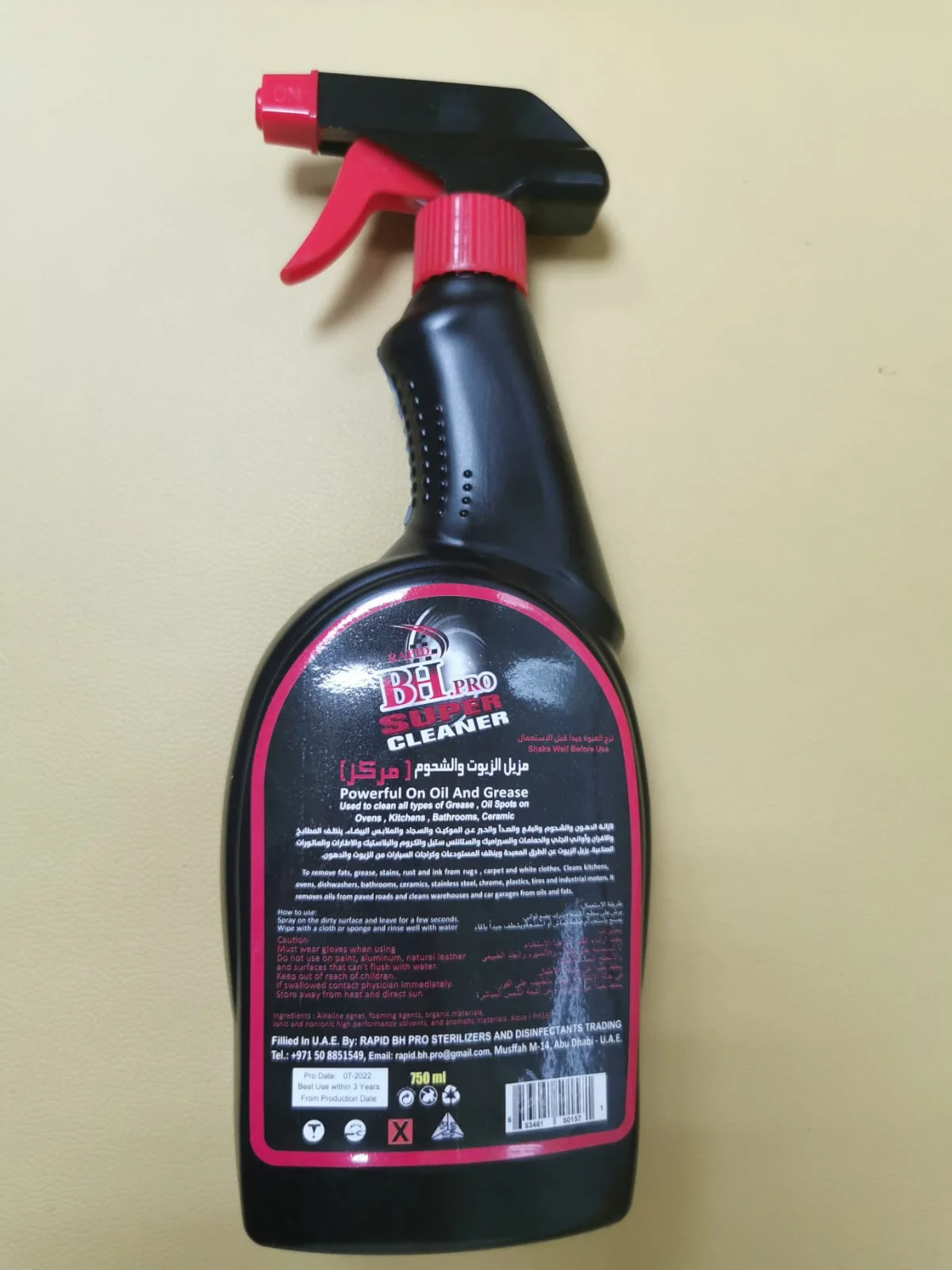 Features: • Fragrant Smell • Cleaning cooking utensils • Remove burnt oil • Oven cleaning • Kitchen ceramic • Marble cleaner • Car engine cleaning • Remove traces of oils and tar and asphalt strains • Cleaning the exhaust fans for the kitchen • Degreasing and diesel and all hard spots