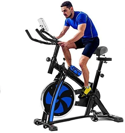 Skyland Spinning Bike EM-1554 the flywheel and belt drive indoor bike system and it provides a magnificent smooth and quite riding continuously. Adjustable resistance with the convenient tension knob gives you the experience. It has a push-down emergency brake that will bring the bike to an immediate stop The water holder and bottle is included in this item to purchase.Color Blue Size 105 L x 21 W x 118 H Style EM-1554 Display Type LED Drive System Belt Frame Material Steel Number of Items 1 Season Year-round Sport Exercise-&-Fitness Batteries Included? Yes Description Pile Battery_type_aa Brand SKY LAND Department Unisex Adult Manufacturer Topskyland Item model number EM-1554 Product Dimensions 105 x 21 x 118 cm; 24 Kilograms Skyland Spinning Bike EM-1554 the flywheel and belt drive indoor bike system and it provides a magnificent smooth and quite riding continuously. It has Adjustable resistance with the convenient tension knob gives you the experience. It has a push-down emergency brake that will bring the bike to an immediate stop and The water holder and bottle is included in this item to purchase. It has an LED display for time, speed, distance, calories, RPM, Scan. Coated metal build support for 130 kgs. user weight. and also have a 7 -level of the seat height for different user heights and 5 level height for the handle.