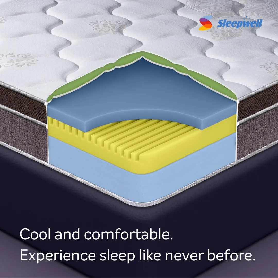 Sleepwell Nexa Classic | Resitec Foam | Super King Bed Size | Medium Firm | Neem Fresche Technology | Anti Sag Mattress (200L x 200W x 25H cm)
