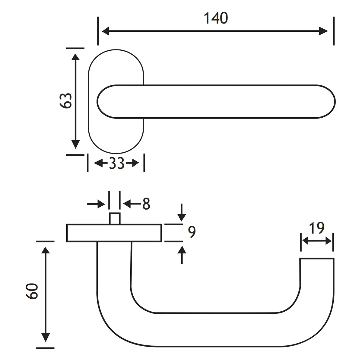 Stainless Steel Tubular Lever Handle on Narrow Rose DTTH001