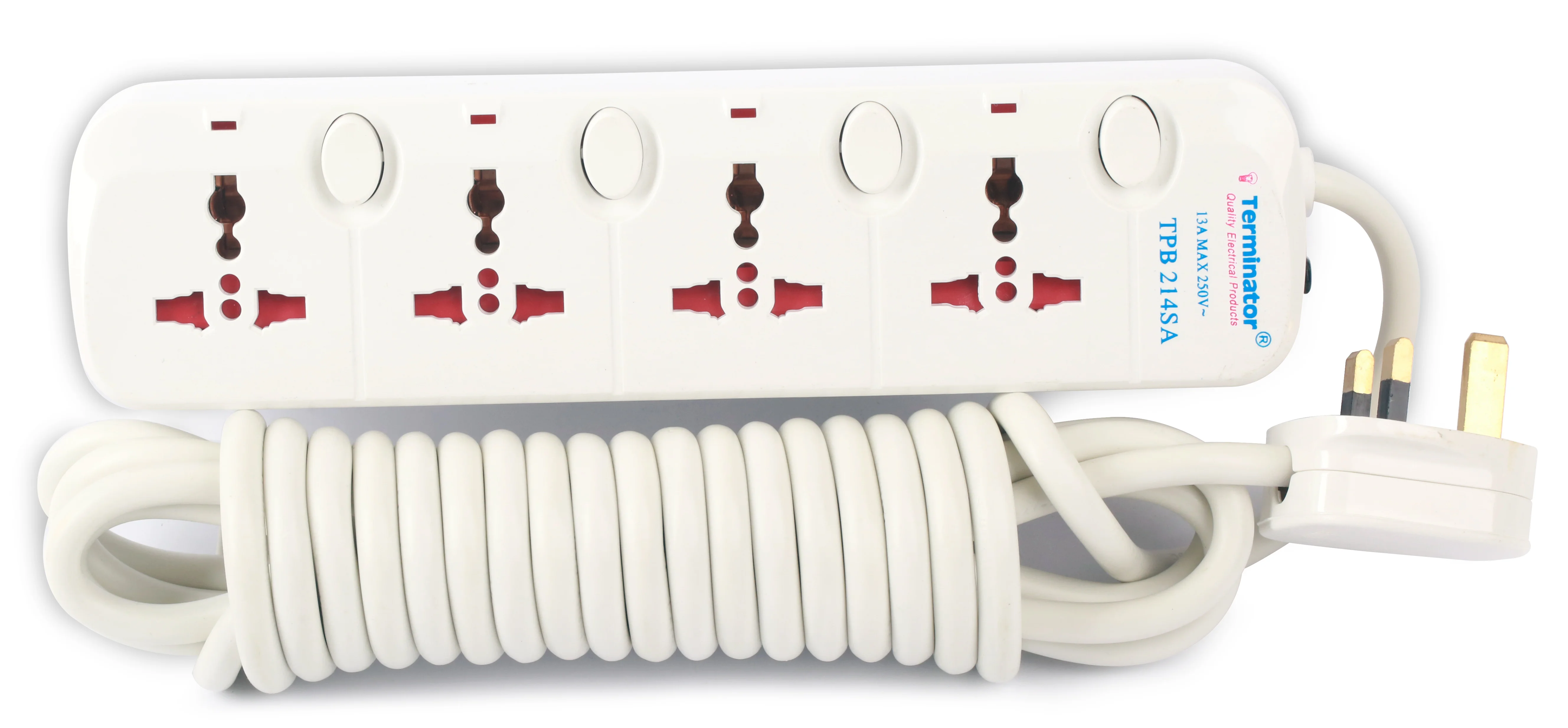 TERMINATOR 4 Way Universal Power Extension Socket 5M