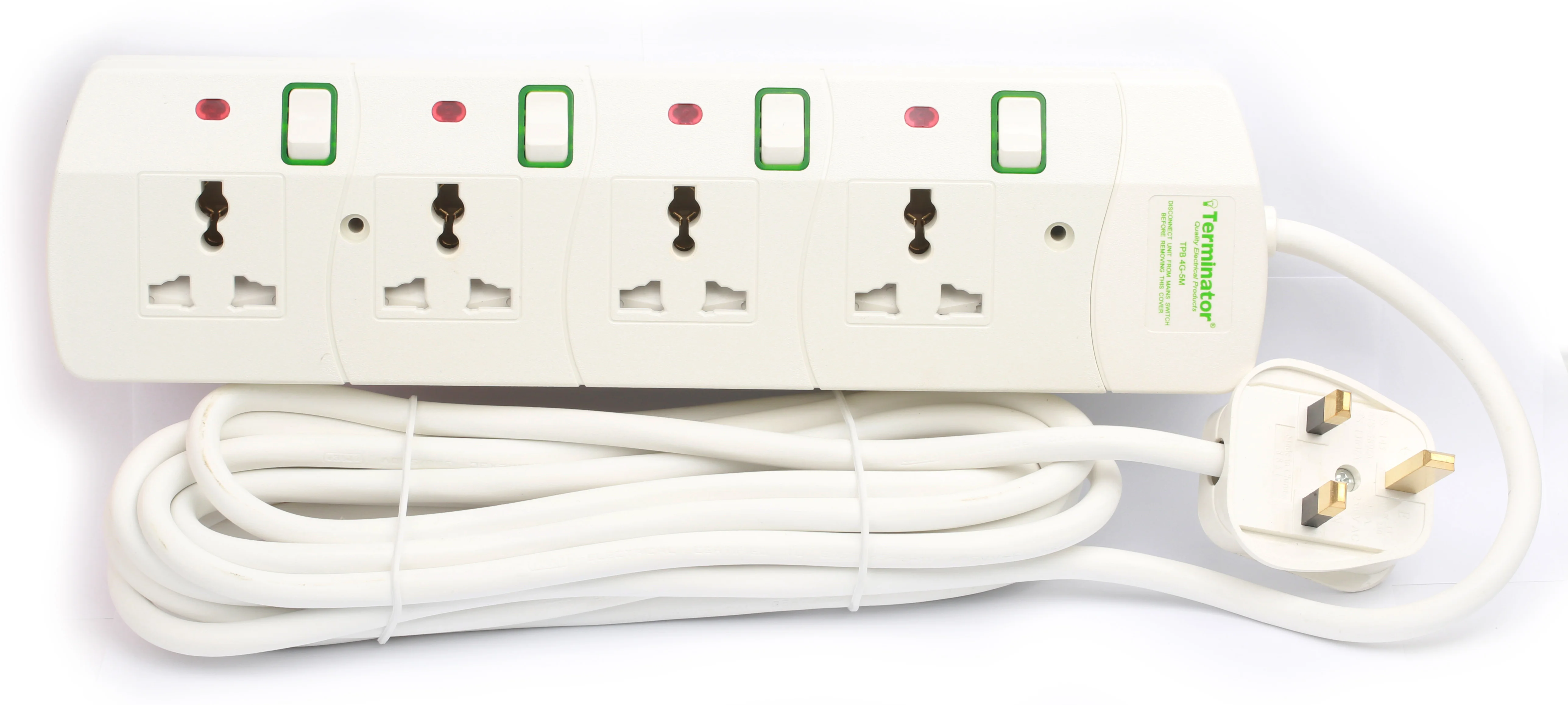 TERMINATOR 4 Way Universal Power Extension Socket with 13A Plug and 5M