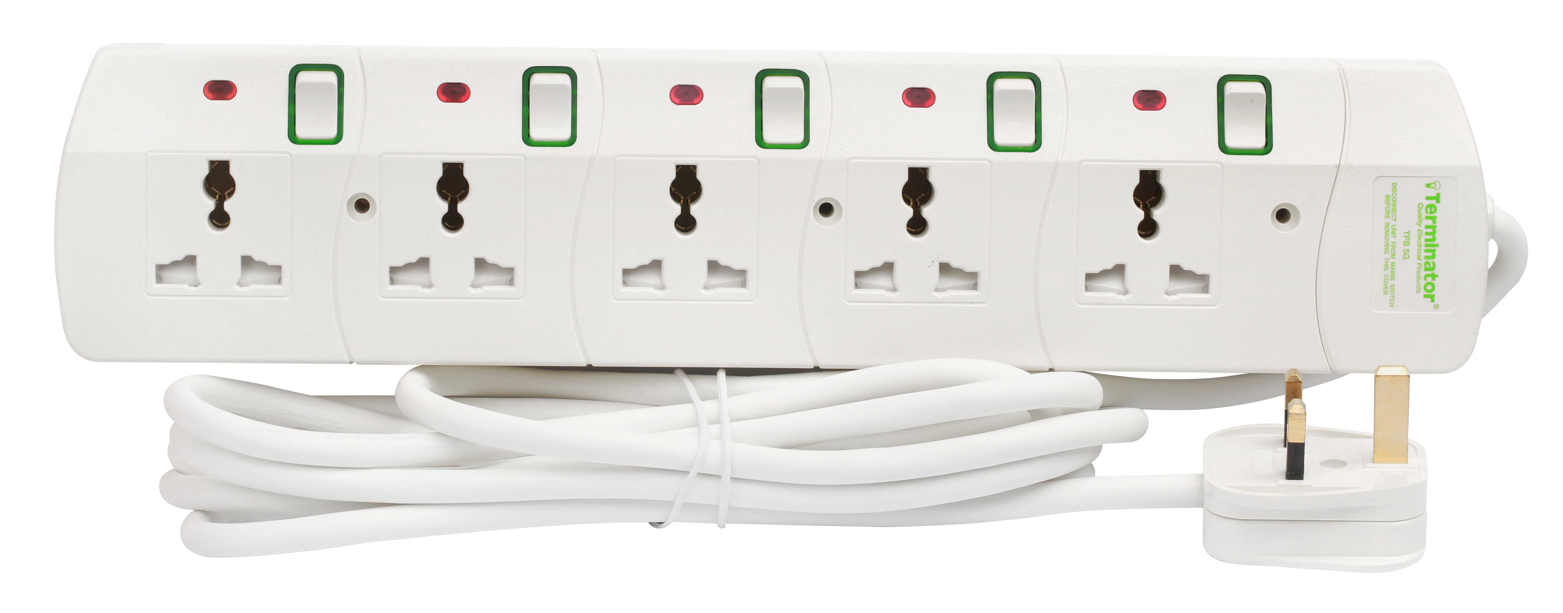 TERMINATOR 5 Way Universal Power Extension Socket 13A 3M