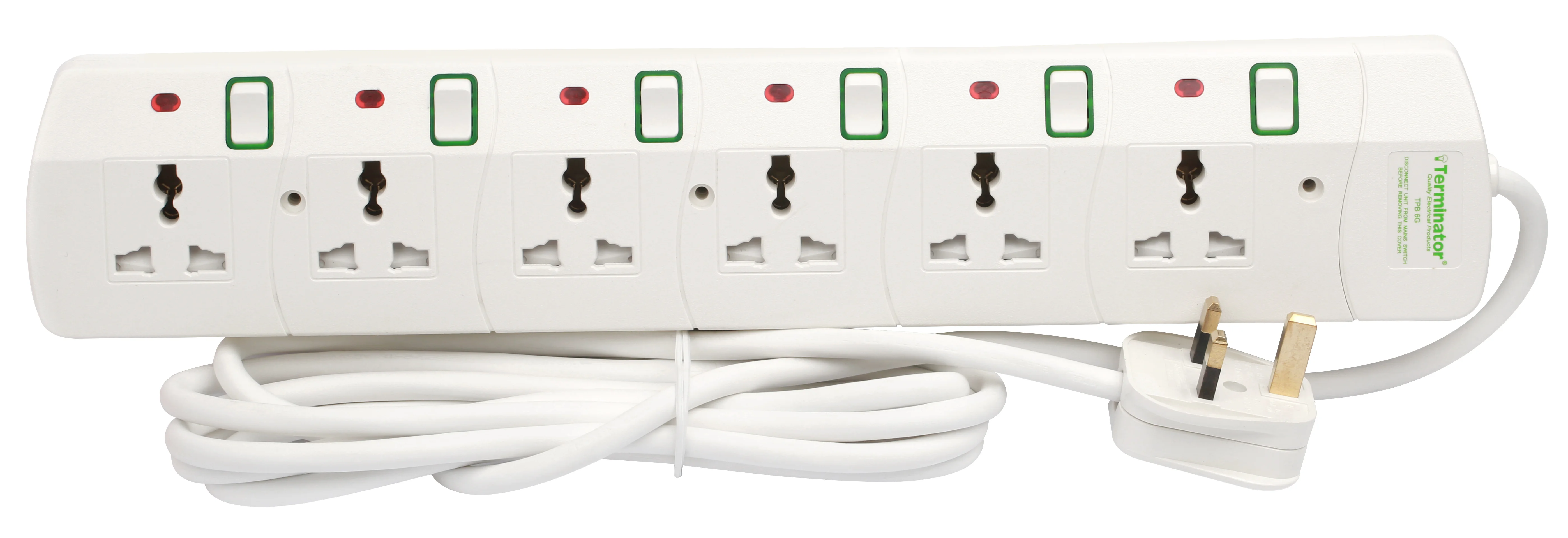 TERMINATOR 6 Way Universal Power Extension Socket 13A 3M