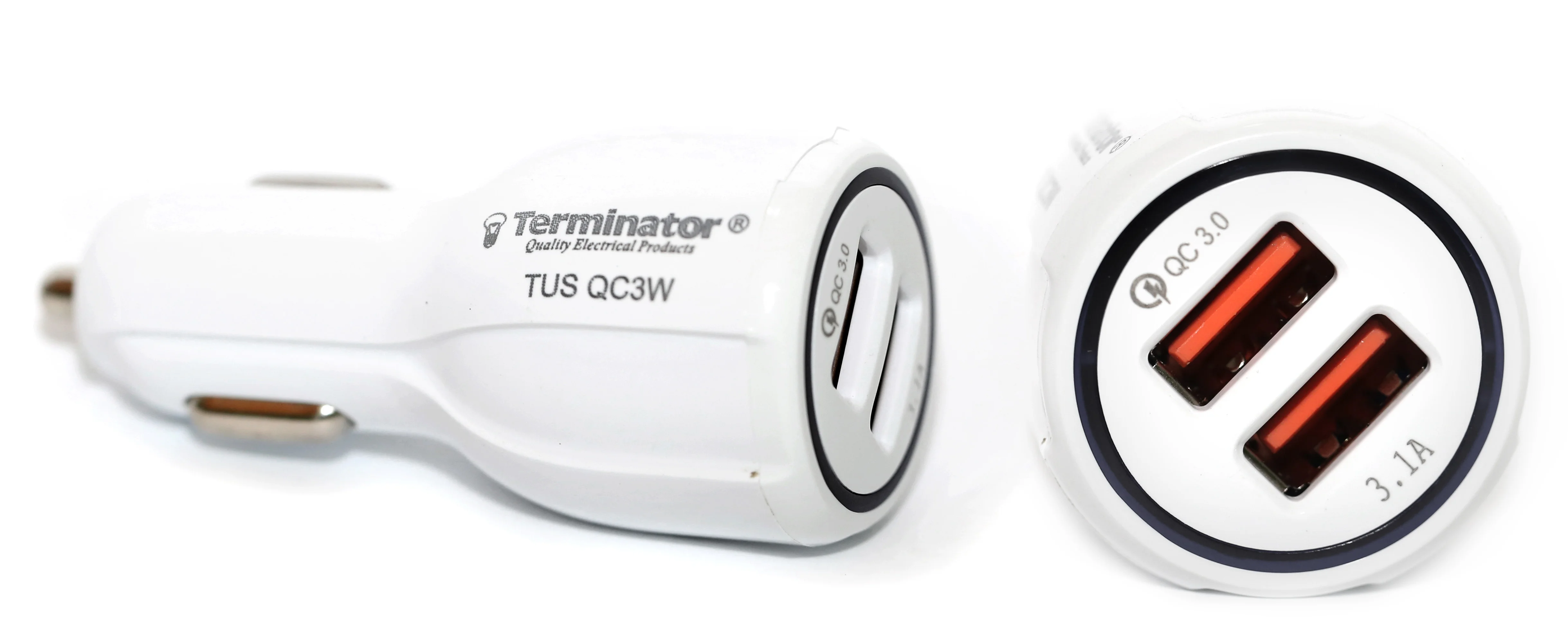 TERMINATOR Dual USB Fast Car Charger (6A-5V) -White