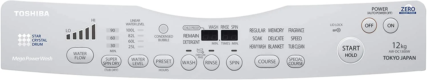 Brand Name ?TOSHIBA Model Info ?AW-DC1300WBA(W) Product Dimensions ?70 x 69 x 110 cm; 54 Kilograms Capacity ?12 Kilograms Part Number ?AW-DC1300WBA(W) Access Location ?Top Load Voltage ?240 Volts Batteries Required? ?No Item Weight ?54 kg