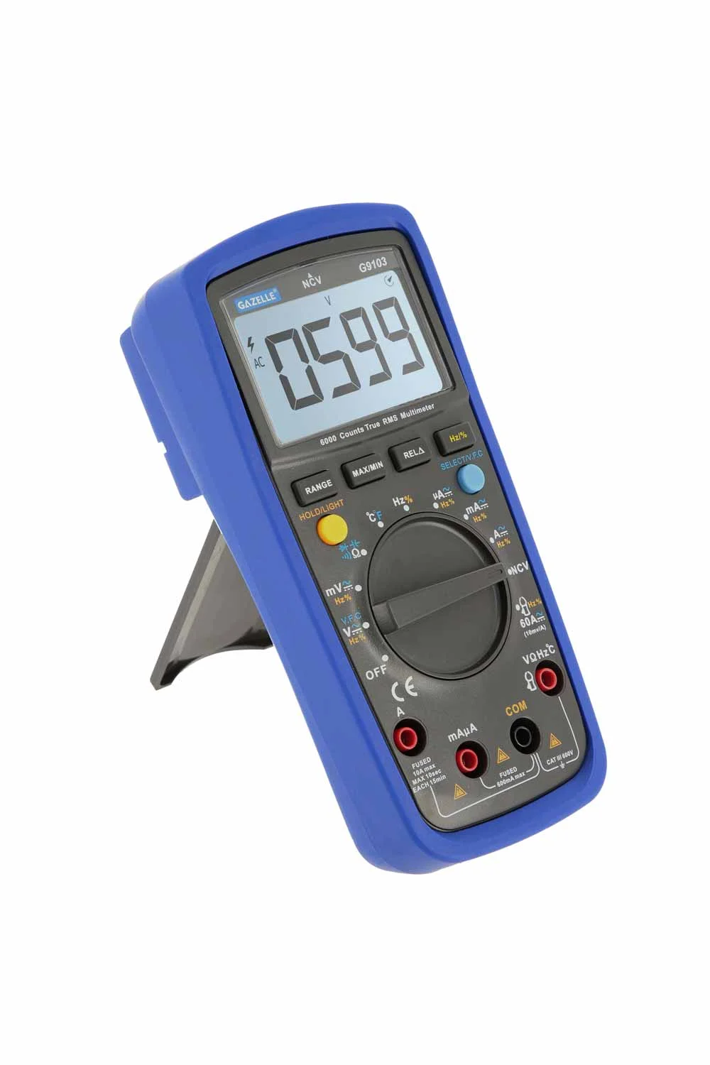 WIDE RANGE of tests for Voltage, Current, Resistance, Continuity, Capacitance, Frequency and Temperature; Tests Diodes Transistors PROFESSIONAL LEVEL features include Datahold, Auto Power-off, Auto-Ranging capability and True RMS for measuring both AC/DC Current and Voltage EASE OF USE: Convenient features NCV Voltage Detector and Safety verification, Large LCD Backlit Screen and Kickstand make taking and recording measurements easier than ever before IDEAL FOR COMMERCIAL settings where it can handle the demands of a long workday, from the durable exterior to the wide range of heavy-duty capabilities Rugged DMM: High quality built and pass the 2 meters drop test
