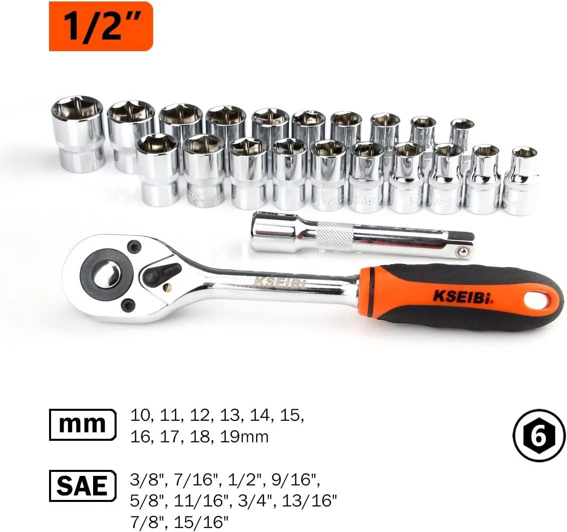 101815 - KSEIBI Hexagon Socket And Ratchet Set 1/2" 22-Pc