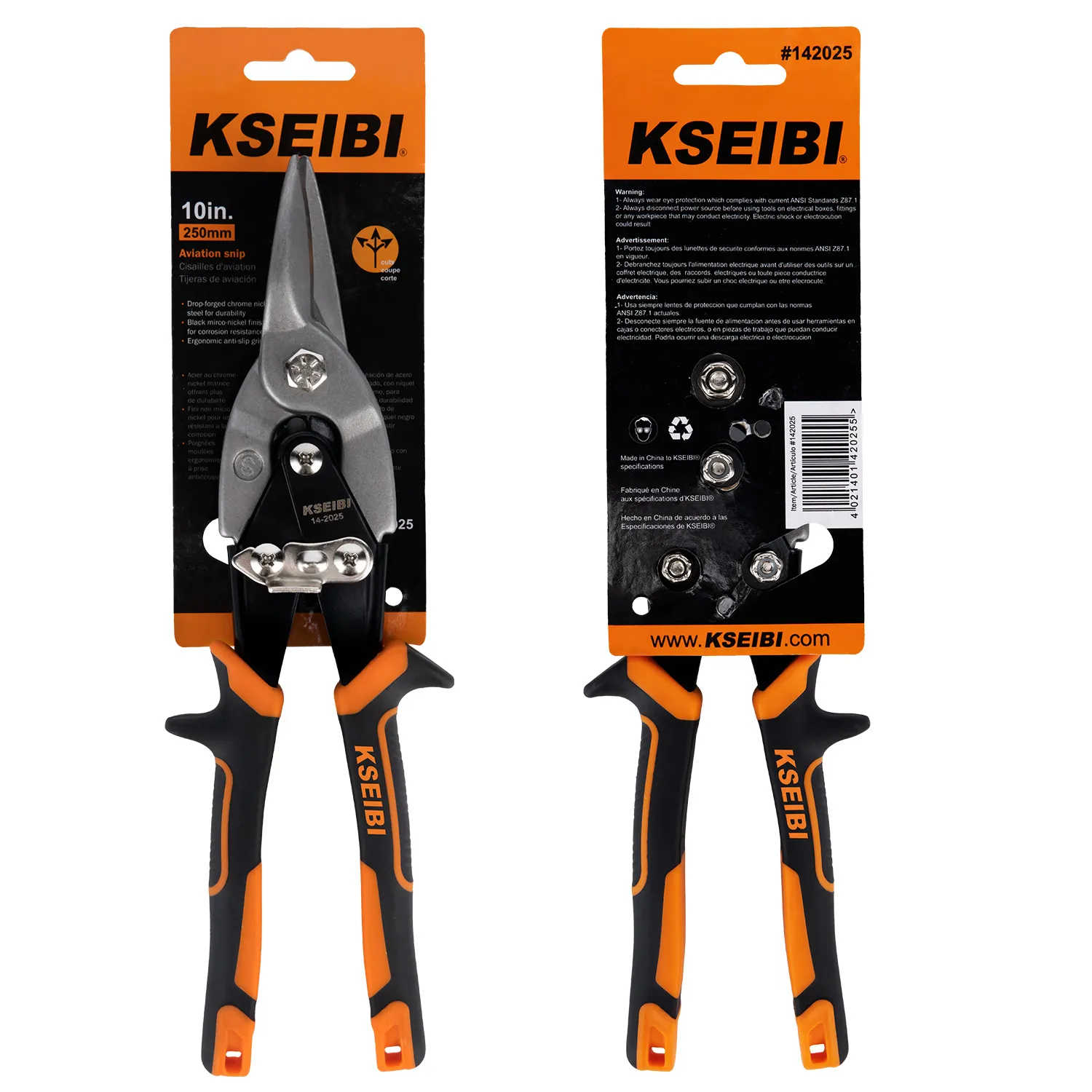 The KSEIBI Aviation Tin Snips 10" - Left are precision-engineered for cutting thin steel and aluminum sheets with ease and accuracy. Built from hardened chrome vanadium, the tool offers exceptional durability and strength, ensuring reliable performance even with repeated use. Its left-cut design provides precise control for curved or angled cuts, making it particularly useful for sheet metal work, HVAC installations, and similar applications. With a comfortable, ergonomically designed handle, the snips reduce hand fatigue during extended tasks, enabling better handling and efficiency. The 10-inch size strikes the perfect balance between maneuverability and cutting power, while the robust materials ensure long-lasting performance. Ideal for metal fabricators, construction professionals, and workshop settings, the KSEIBI Aviation Tin Snips deliver the precision and reliability needed for demanding cutting tasks. Whether shaping ductwork or trimming aluminum sheets, this tool is a dependable choice for clean, controlled cuts. 1. 10" Aviation Tin Snip designed for cutting thin steel and aluminum sheets with precision. 2. Constructed from hardened chrome vanadium for enhanced strength and durability. 3. Available in left, right, and straight designs for versatile cutting control. 4. Ideal for both general consumers and industry professionals requiring accurate sheet metal cuts. 5. Ergonomically designed handle ensures a comfortable grip during prolonged use. 6. Provides excellent control for cutting a variety of steel and aluminum materials. 7. Specially crafted for left-handed users to deliver optimal cutting performance. 8. Reliable tool for sheet metal fabrication, construction, and DIY projects. 9. Engineered for smooth, clean cuts to reduce effort and material distortion. 10. Suitable for a wide range of applications, from professional to everyday tasks.