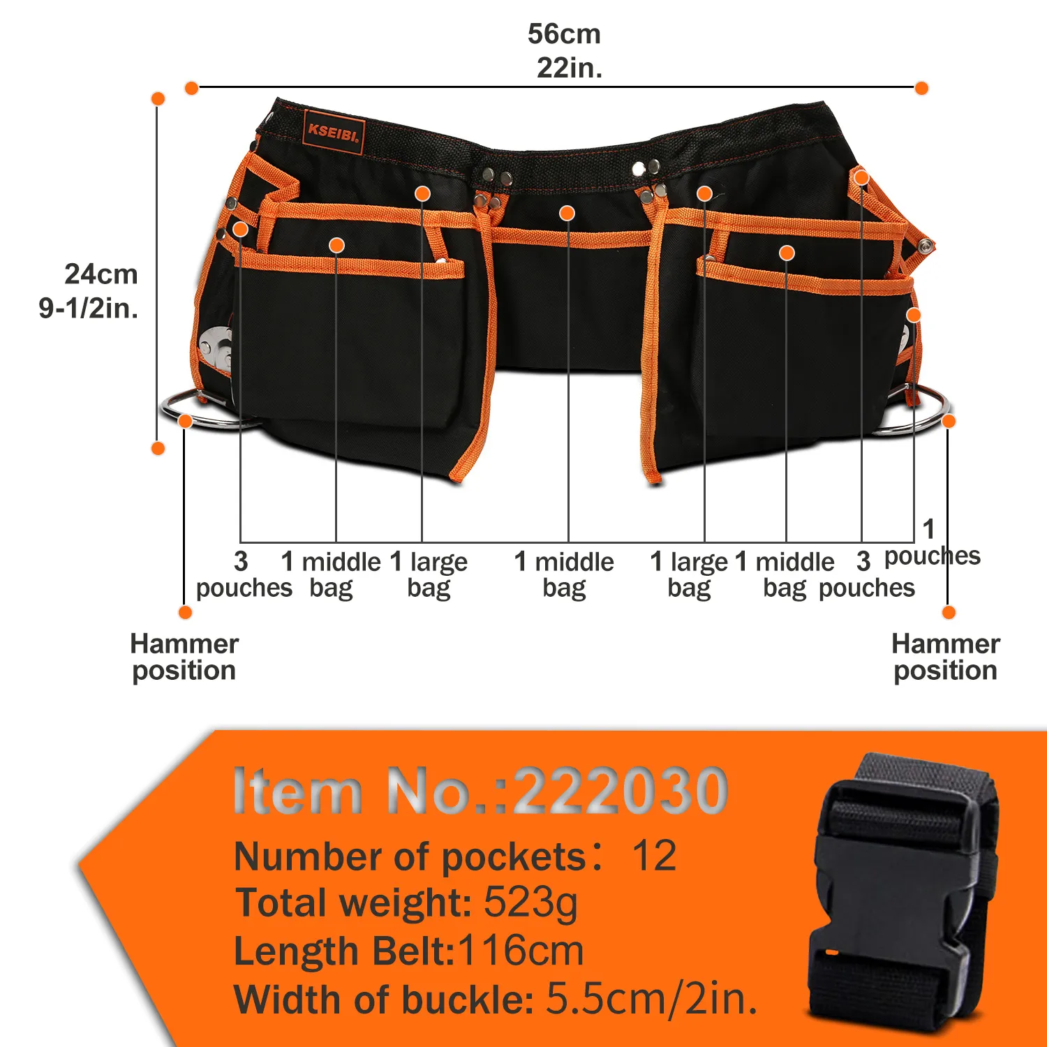 The KSEIBI Electrician's Tool Belt Combo is a practical solution for electricians seeking reliable organization and accessibility on the job. Designed to keep essential tools within reach, it features a thoughtfully arranged combination of pockets and compartments tailored to the needs of electrical work. Constructed from durable oxford fabric, this tool belt provides the strength and longevity required for demanding work environments. Its sturdy material resists wear and tear, ensuring it can handle the daily rigors of professional use while maintaining its structure over time. The adjustable design accommodates various body types, offering a secure and comfortable fit that minimizes strain during extended periods of use. Whether you're installing wiring, troubleshooting, or performing routine maintenance, this belt keeps your tools secure and organized, helping you stay efficient and focused. Packaged conveniently on a hanging card, the KSEIBI Electrician's Tool Belt Combo is an essential companion for electricians who value durability, precision, and practical design in their tools. 1. Combination tool belt specifically designed for electricians to enhance efficiency. 2. Crafted from high-quality oxford fabric for long-lasting performance. 3. Multiple compartments and pockets for organized tool storage. 4. Adjustable belt ensures a comfortable fit for various waist sizes. 5. Lightweight design minimizes fatigue during prolonged use. 6. Reinforced stitching provides extra durability for heavy-duty tasks. 7. Suitable for both professional electricians and DIY enthusiasts. 8. Hanging card packaging for convenient display and storage. 9. Ergonomic design supports easy access to tools while working. 10. Reliable construction tailored to meet industry standards.