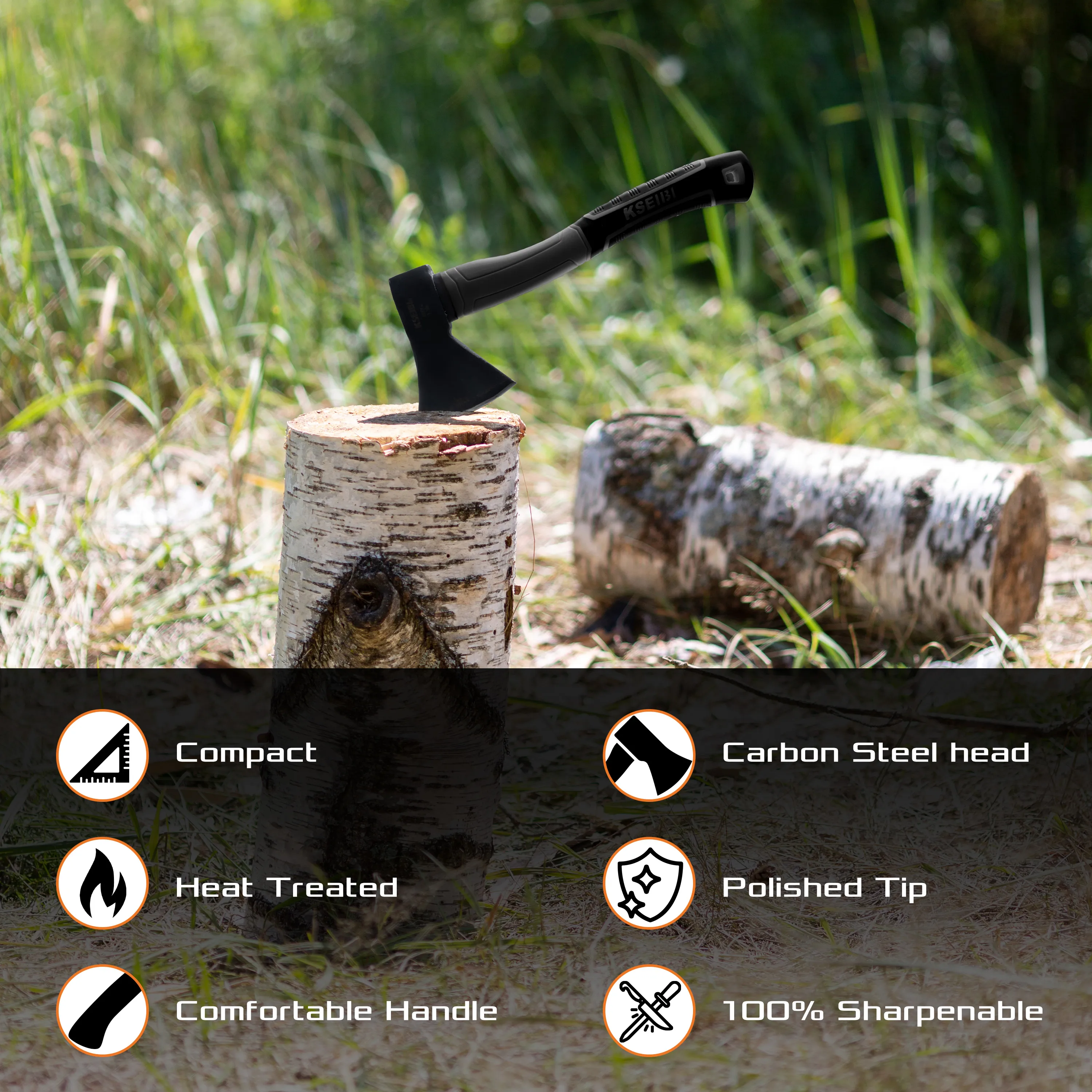 The KSEIBI Axe with Fiberglass Handle 600g/Canyon Black is a robust and reliable tool crafted for a variety of outdoor tasks, from chopping firewood to clearing brush. Featuring a 600g drop-forged carbon steel head, it delivers exceptional strength and cutting precision, ensuring efficient performance even in demanding conditions. The fiberglass handle enhances durability while providing a lightweight yet sturdy grip, reducing hand fatigue during extended use. Its ergonomic design offers improved control and comfort, making it suitable for both occasional and regular tasks. The Canyon Black finish on the head adds a sleek, wear-resistant layer, complementing the axe?? functional design. Ideal for landscapers, outdoor workers, and general-purpose use, this axe is built to withstand tough environments and deliver consistent results. A practical addition to any toolkit, the KSEIBI Axe combines durability, precision, and ease of use, reflecting the brand?? commitment to reliable craftsmanship. 1. Axe with a 600g drop-forged carbon steel head ensures durability and precision for outdoor tasks. 2. Fiberglass handle provides lightweight yet robust strength for extended use. 3. Ergonomic design enhances grip comfort and reduces hand fatigue. 4. Carbon steel head offers excellent edge retention and cutting performance. 5. Ideal for chopping, splitting, and other outdoor applications. 6. Weather-resistant materials ensure reliable performance in various conditions. 7. Balanced weight distribution improves control and efficiency. 8. Designed for both general consumers and industry professionals. 9. Packaged in a simple plastic bag for basic protection during transport. 10. Suitable for heavy-duty tasks while maintaining ease of handling.