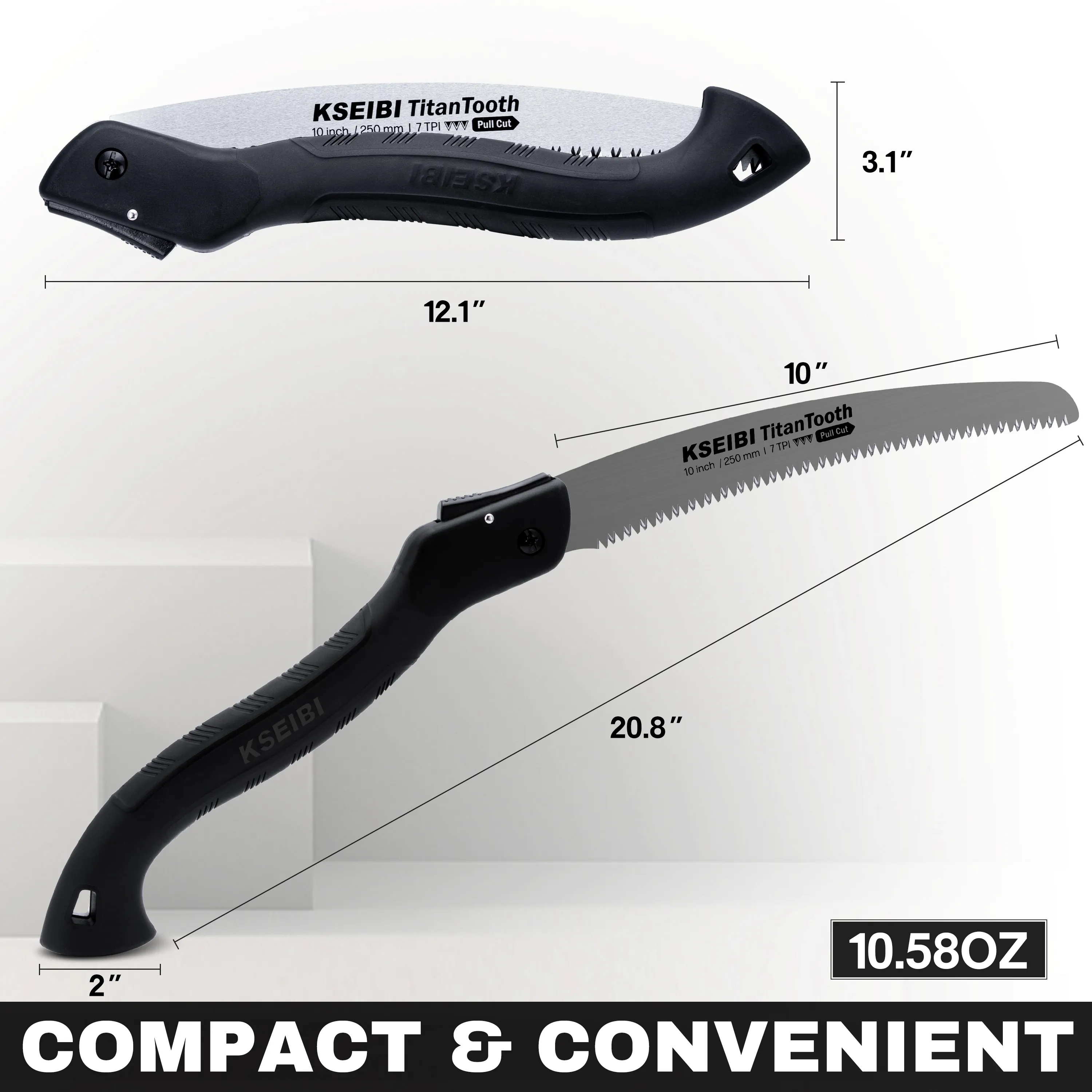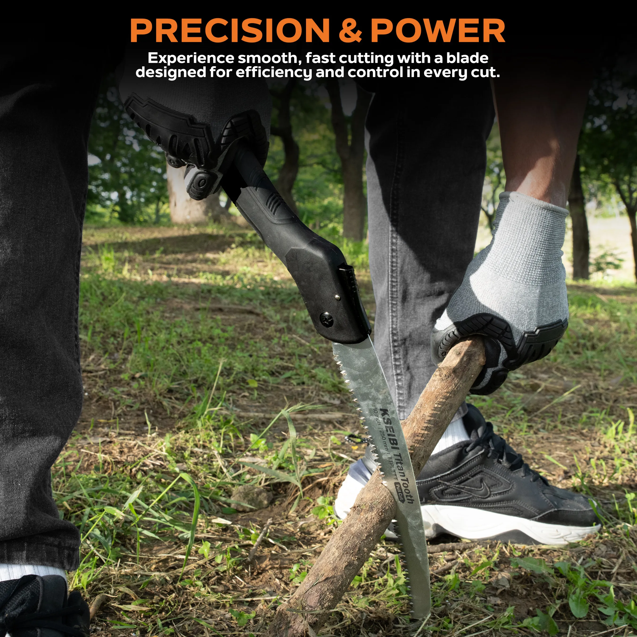 The KSEIBI Folding Saw Canyon Black is a versatile cutting tool built for precision and durability. Its compact, foldable design makes it easy to carry and store, while the SK4 chrome-electroplated blade delivers sharp, reliable cuts through wood, branches, and other materials with minimal effort. This saw is a dependable choice for landscaping, gardening, camping, and light construction tasks. The dual-color handle, enhanced with a black TPR grip, ensures a secure and comfortable hold, even during extended use or in challenging conditions. Engineered for efficiency and safety, the folding mechanism protects the blade when not in use, reducing the risk of accidental damage or injury. Whether you??e a professional tradesperson, outdoor enthusiast, or DIY hobbyist, the KSEIBI Folding Saw Canyon Black combines portability, performance, and practicality in one durable tool. Packaged in a sleek color sleeve, it?? ready to become an essential addition to your toolkit. 1. Folding saw with a dual-color handle for enhanced usability and style. 2. Ergonomic black TPR grip ensures a comfortable and secure hold during use. 3. SK4 chrome-electroplated blade delivers superior durability and cutting performance. 4. Compact folding design offers convenient portability and storage. 5. Ideal for both general consumers and industry professionals requiring precision tools. 6. Sharp blade designed to handle a variety of cutting tasks with ease and efficiency. 7. Durable materials ensure long-lasting performance even under demanding conditions. 8. Lightweight construction minimizes fatigue during extended use. 9. Engineered for optimal balance and control while cutting. 10. Packaged in a color sleeve for clear product display and identification.