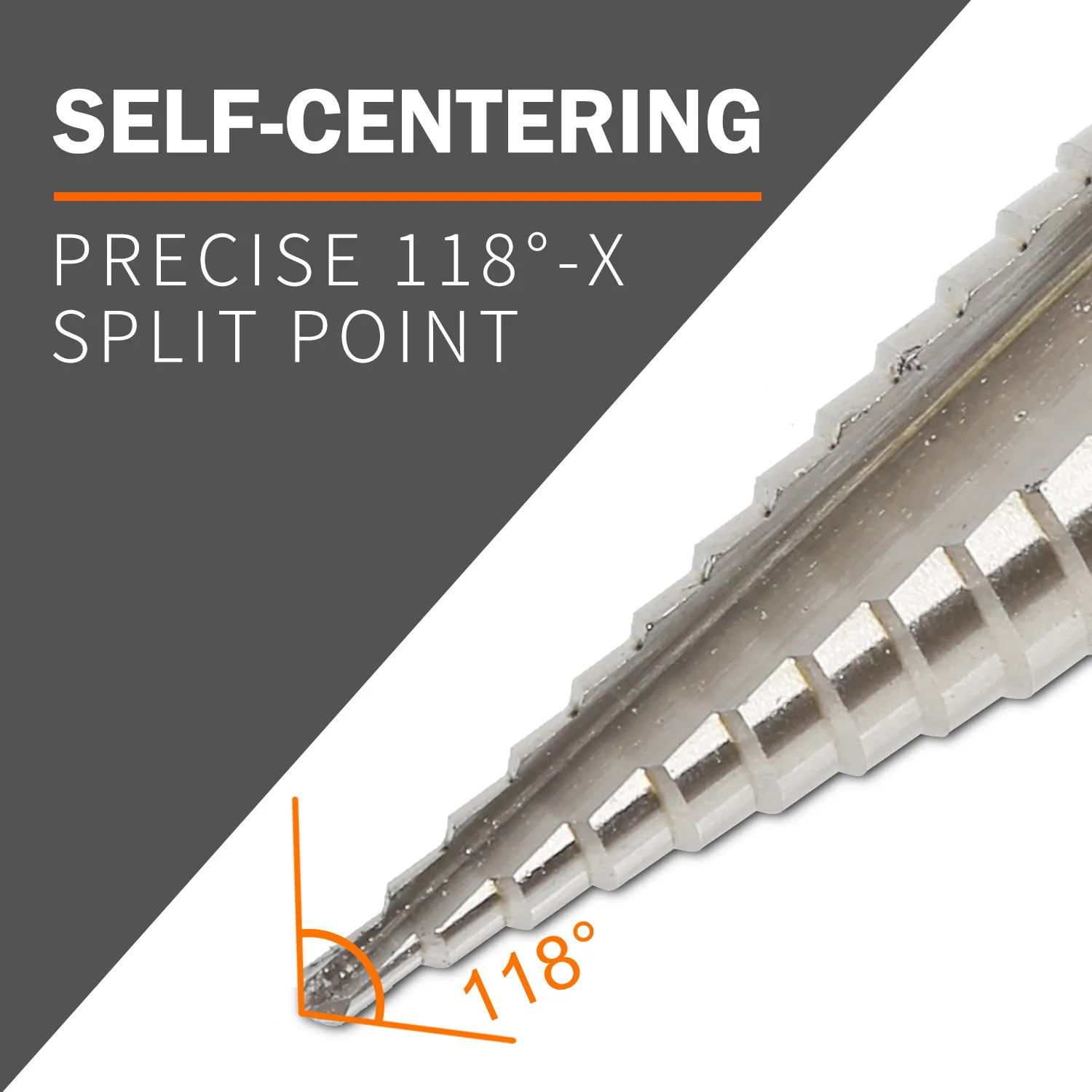 The KSEIBI HSS Step Drill Bits Set (3-Pc) is a versatile solution for efficient metal drilling. Engineered from high-speed steel (HSS), these step drill bits deliver durability and precision, ensuring smooth, clean cuts across various metal surfaces. The carefully designed step profile eliminates the need for multiple drill bits, allowing you to create holes of different diameters with ease. This 3-piece set is an excellent choice for professionals and tradespeople who require reliability and performance in demanding applications, such as electrical work, sheet metal fabrication, or automotive tasks. The heat-resistant HSS construction ensures long-lasting edge retention, even during prolonged use. Packaged in a sturdy plastic box, this set offers convenient storage and portability, keeping your tools organized and ready for any job. With a focus on practicality and performance, KSEIBI delivers a reliable drilling solution for professionals who demand precision and durability in every task. 1. High-speed steel (HSS) construction ensures durability and precision for drilling in metal. 2. Three-piece set offers versatile step sizes to accommodate various drilling requirements. 3. Ideal for smooth and accurate drilling through metal surfaces. 4. Reduces the need for multiple drill bits with its stepped design. 5. Compatible with a wide range of drilling machines and tools. 6. Heat-resistant material maintains performance even during extended use. 7. Engineered for clean, burr-free holes in metal workpieces. 8. Suitable for both professional and general consumer applications. 9. Compact design allows for easy storage and portability. 10. Designed for efficient performance in industrial and home projects.