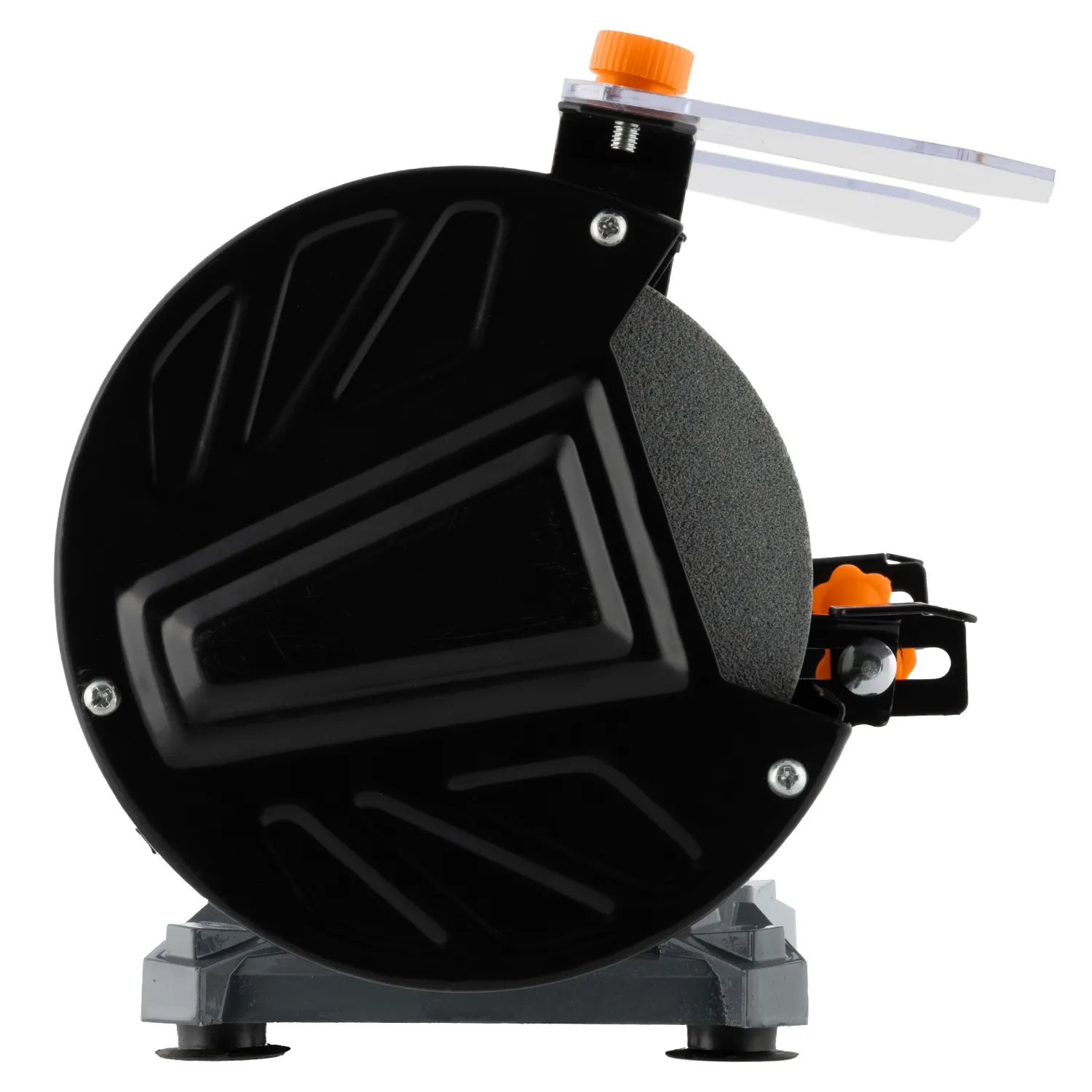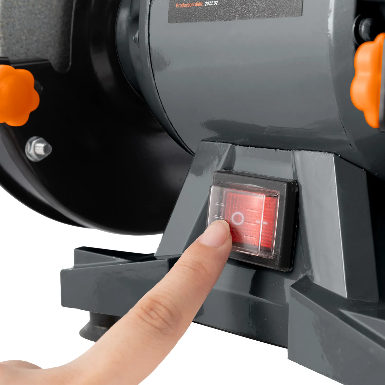 The KBG 15-150 Bench Grinder from KSEIBI is engineered for precision grinding, sharpening, and material shaping tasks in workshops and industrial settings. With its 150mm grinding wheels and a robust 150W motor, this tool delivers consistent performance, making it ideal for maintaining tools, deburring metal, or refining edges with accuracy. Built for durability, the KBG 15-150 features a sturdy housing that minimizes vibration for smoother operation, ensuring long-term reliability even under demanding conditions. Its compact design allows it to fit seamlessly into any workspace without compromising power or efficiency. Perfect for metalworkers, machinists, and maintenance professionals, this bench grinder offers the dependability and precision that KSEIBI is known for, making it an essential addition to any tool lineup. 1. Equipped with a powerful 150W motor for efficient grinding and sharpening tasks. 2. Features a 150mm grinding wheel suitable for a range of materials and applications. 3. Compact bench design ensures stability and ease of use in various workspaces. 4. Durable construction ensures long-lasting performance in demanding environments. 5. Ideal for both general consumers and industry professionals seeking reliable tools. 6. Designed for precise grinding, polishing, and sharpening tasks with minimal effort. 7. Low noise and vibration levels enhance user comfort and operational convenience. 8. Easy-to-replace grinding wheels for quick maintenance and uninterrupted workflow. 9. Suitable for a variety of materials including metal, wood, and plastic. 10. Bench-mounted design maximizes safety and provides consistent performance.
