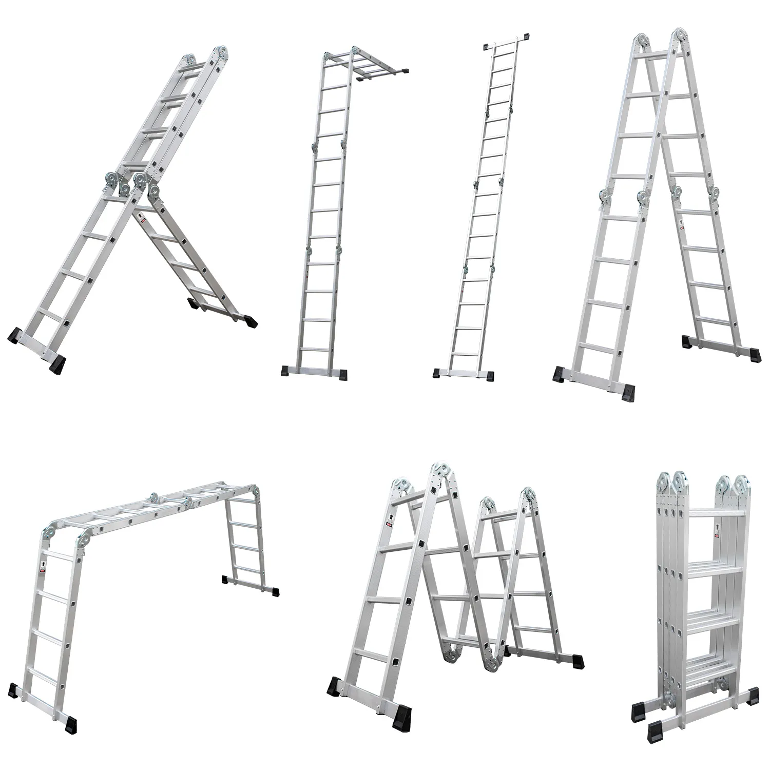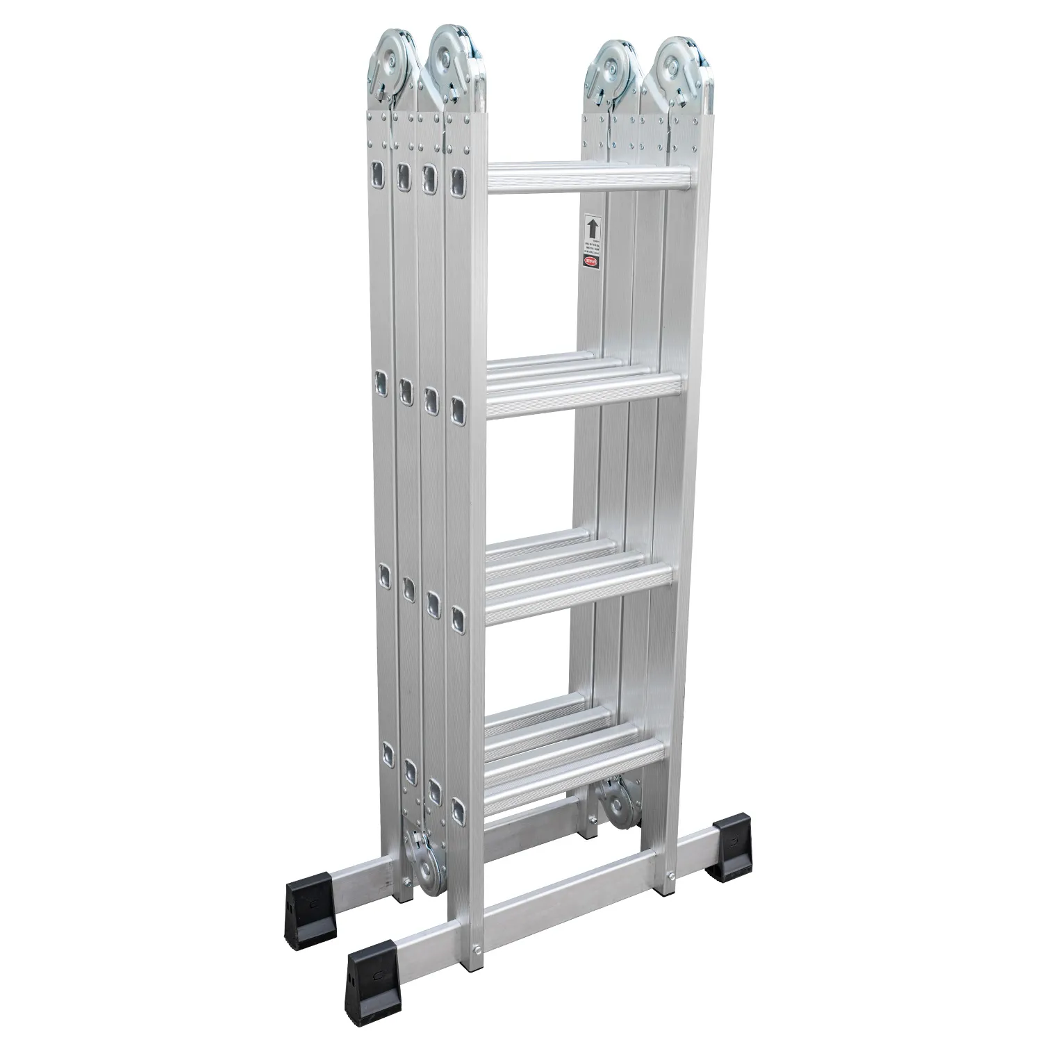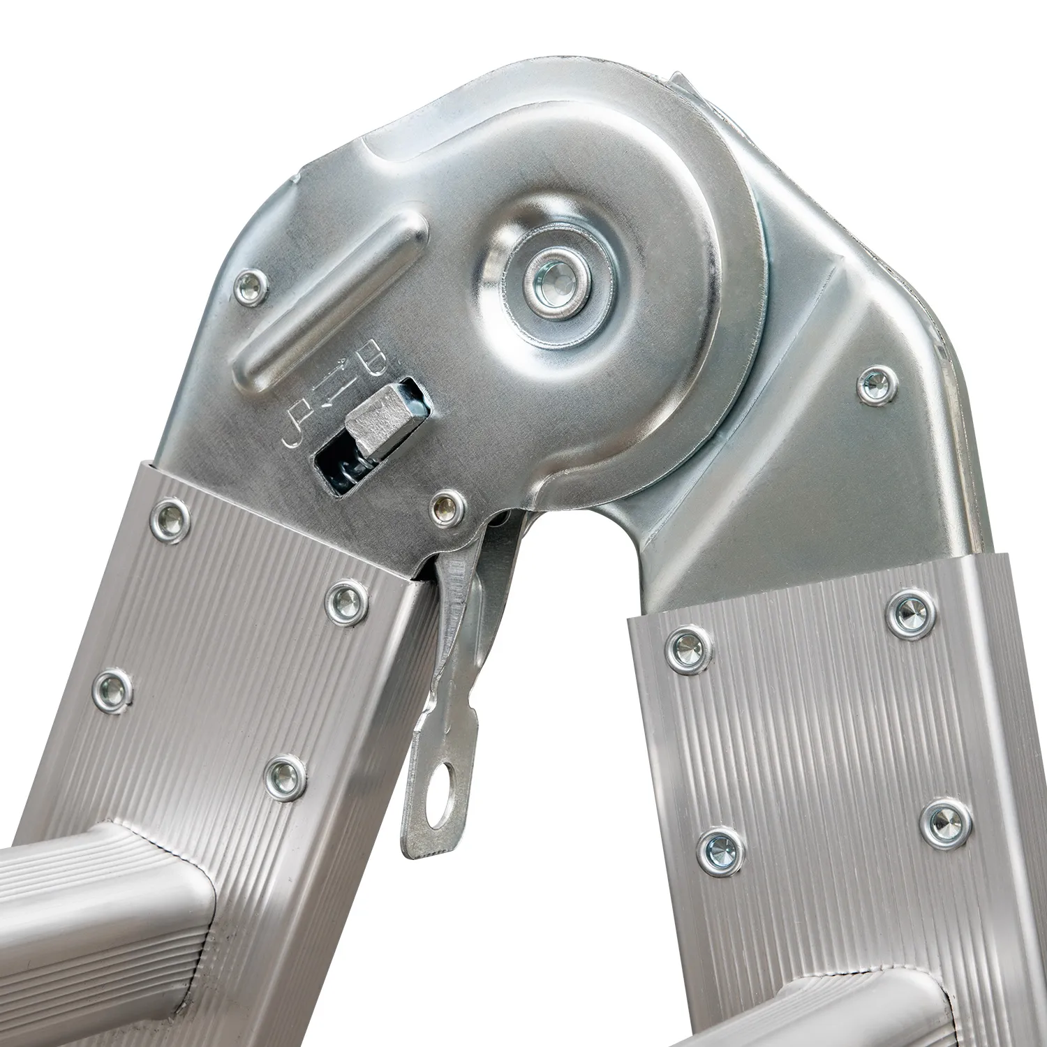 The Multi-Purpose Aluminum Ladder (332cm) is designed for versatility and safety, functioning as a straight ladder, step ladder, or scaffold system. Crafted from lightweight yet durable aluminum, it ensures stability and ease of use for both professionals and DIY users. Safety locks and non-slip feet provide extra security, while its foldable design allows for easy storage and transport. 1. 332cm aluminum ladder with multi-purpose design. 2. Functions as straight ladder, step ladder, or scaffold. 3. Durable aluminum frame offers lightweight handling. 4. Safety locks ensure stable positioning during use. 5. Non-slip feet for extra safety and grip. 6. Foldable design for convenient storage and portability. 7. Versatile tool for indoor and outdoor tasks. 8. Ideal for professionals and DIY projects. 9. Rust-resistant and long-lasting construction. 10. Easy to transport and set up.