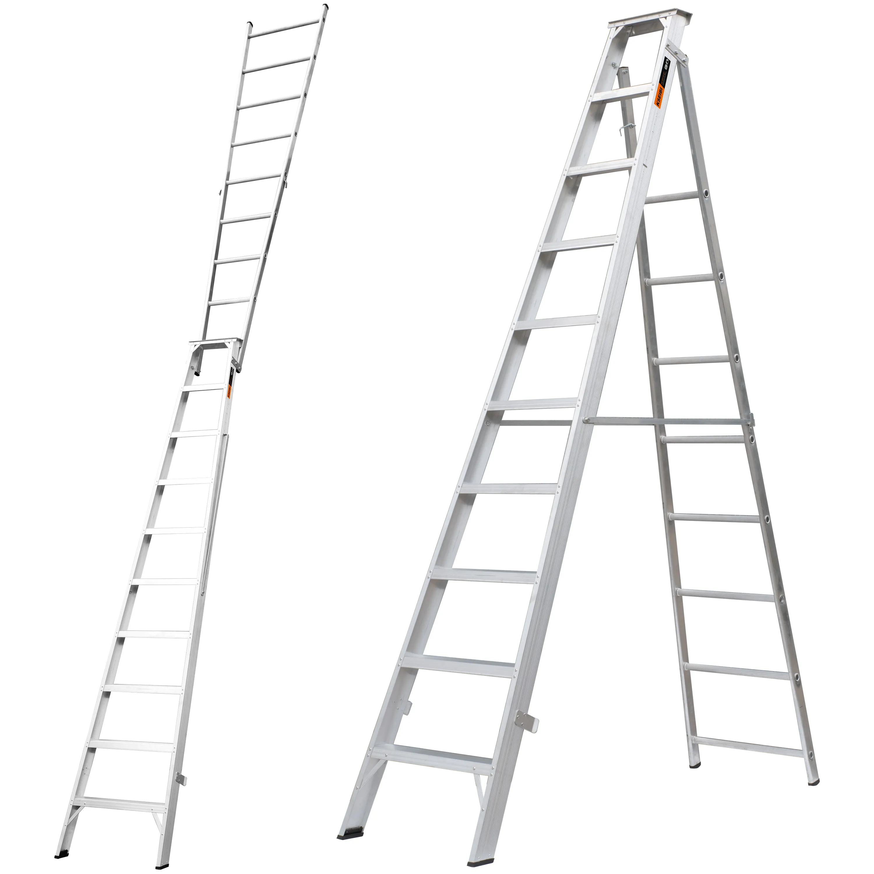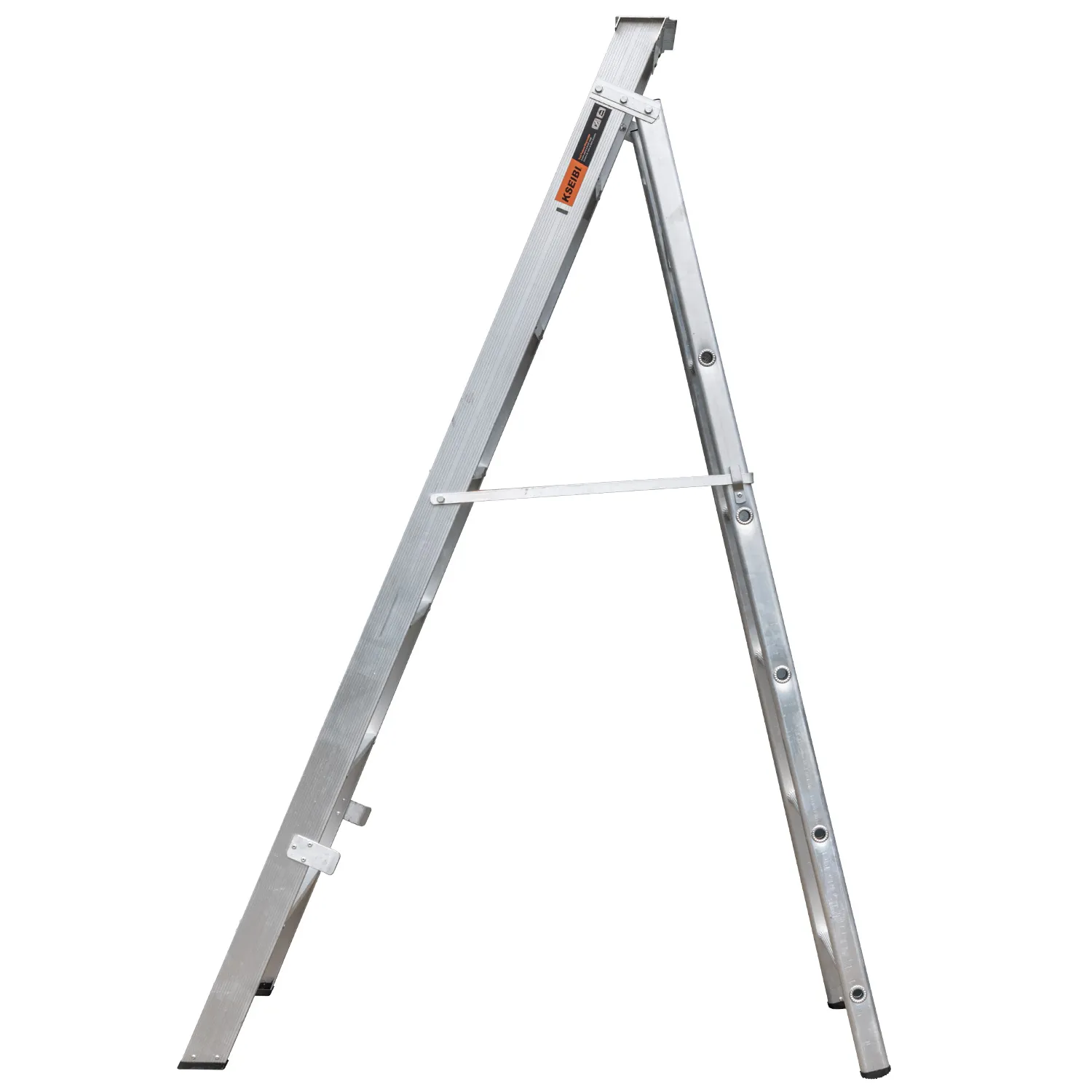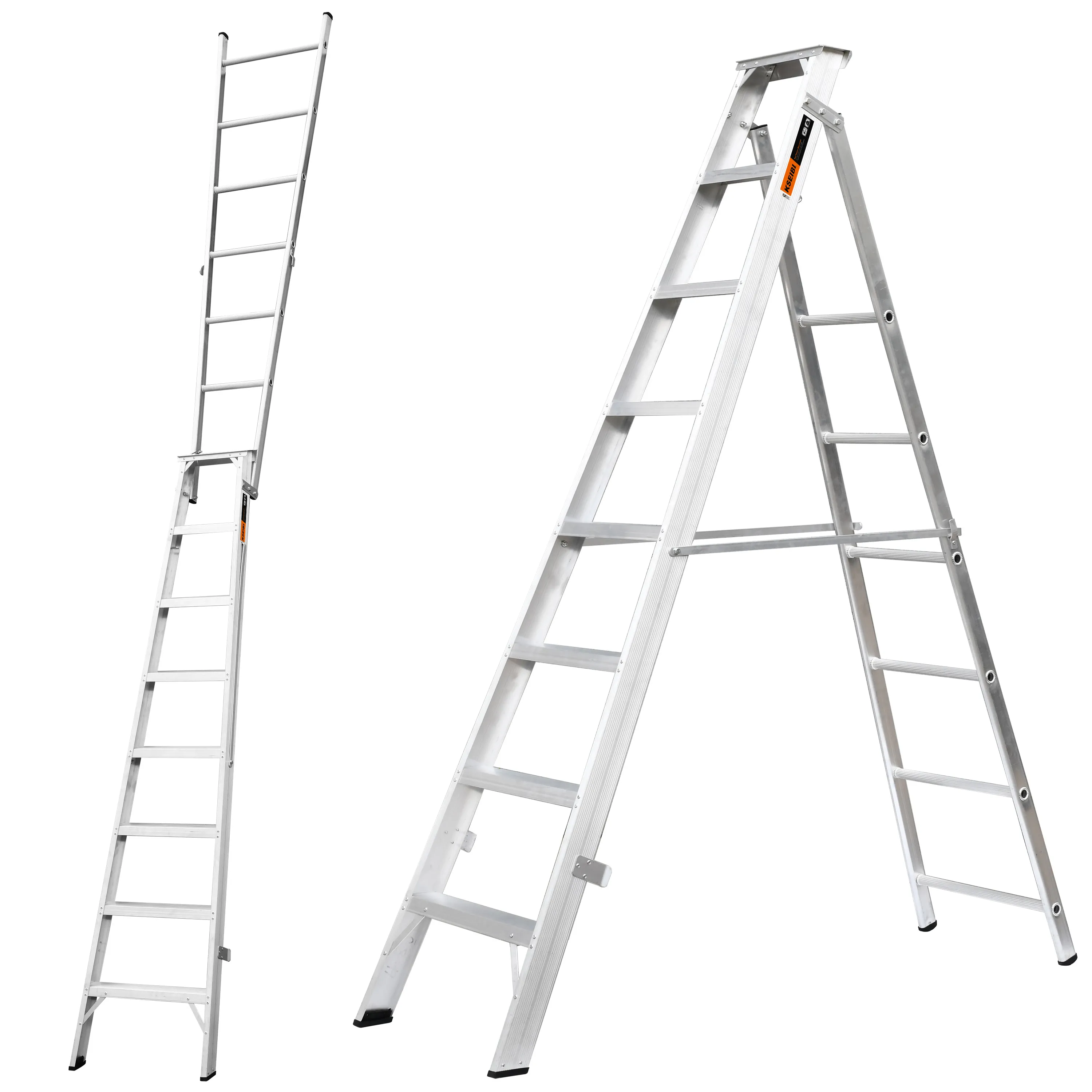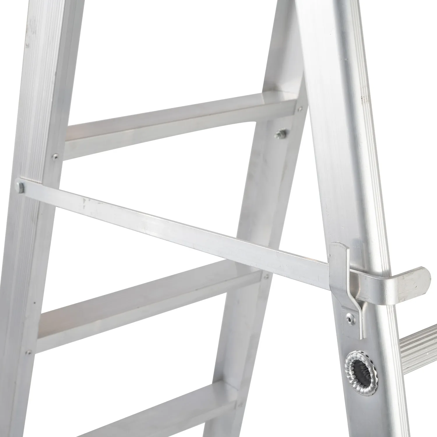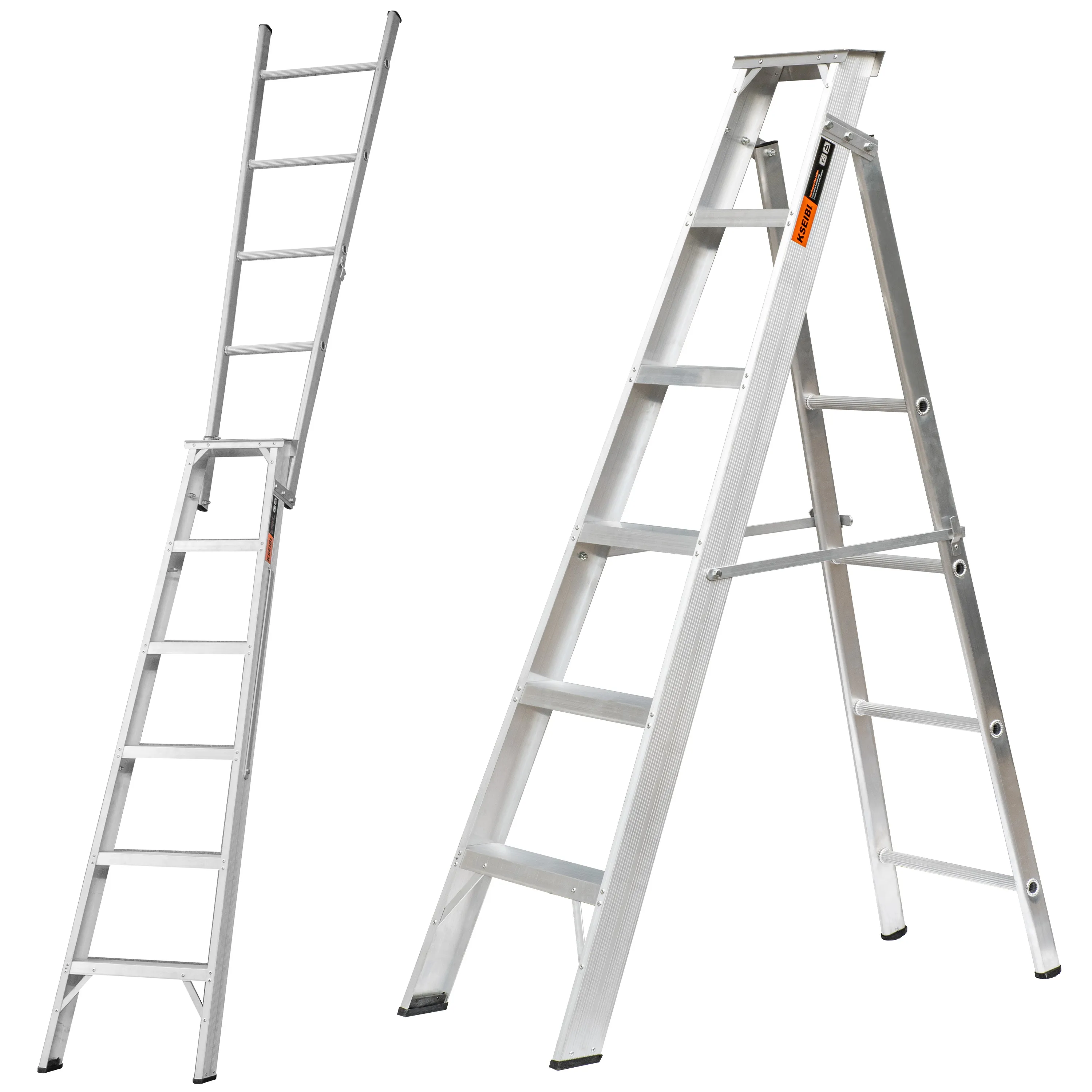 The Dual Purpose Aluminum Step Ladder (219cm) is designed for flexibility and safety, serving as both a step ladder and an extension ladder. Lightweight aluminum ensures portability, while non-slip feet and secure locking mechanisms provide stability for professional and home use. 1. 219cm aluminum ladder with dual-purpose design. 2. Converts from step ladder to extension ladder easily. 3. Lightweight build for easy portability. 4. Non-slip feet ensure stability and safety. 5. Durable rust-resistant aluminum construction. 6. Locking system secures ladder in place. 7. Compact foldable design for storage. 8. Suitable for indoor and outdoor applications. 9. Reliable tool for home and professional projects. 10. Strong and stable performance for versatile use.