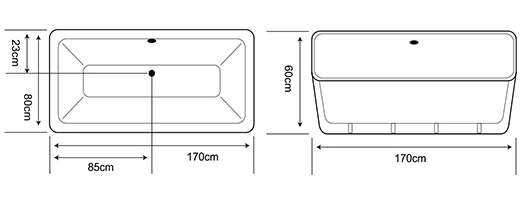 Whirlpool, Jacuzzi system with touch or penumatic on/off. Air system LED Light system (7 Colors) Headrest, Bathpillow SS Handles Waterfall Height adjustable legs Automatic and normal overflow