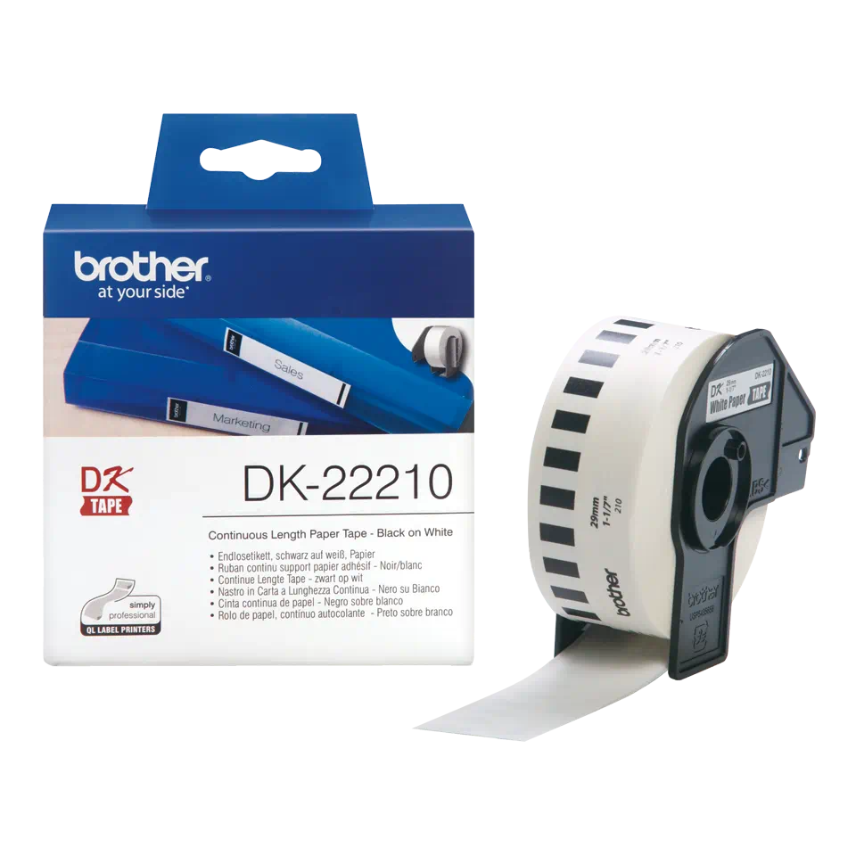 Brother DK22210 CONTINUOUS PAPER LABEL ROLL BLACK ON WHITE