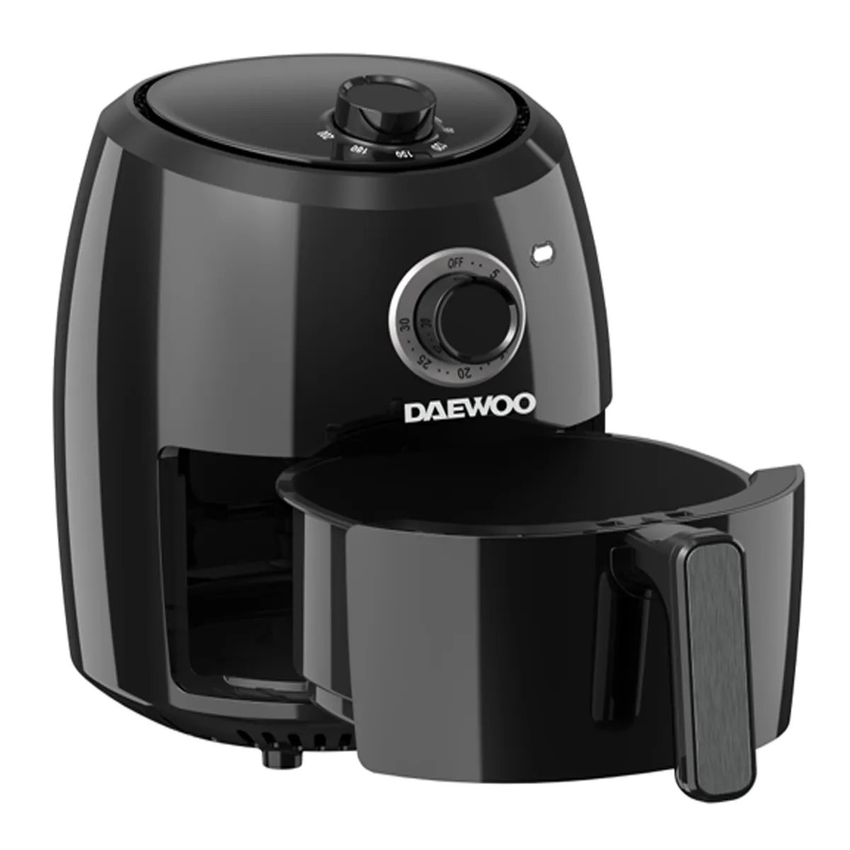Fast frying mode : Fast Frying Mode is perfect if you are in a hurry and want to cook a quick Snack while the handy removable trivet allows for easy cleaning and Non-Stick coating for convenience. Rapid air circulation system : the extremely fast air flow circulation technology cooks your foods at incredible speeds while the over-heat protection ensures safety when cooking at all times. Healthy living & frying : this healthy living air fryer utilizes rapidly heated technology to cook your favorite healthy and low-fat meals with little to no oil. 30 minutes timer and temperature control : easily switch between a temperature range from 80~200 degree for perfect results and also set a handy 30-minute timer if required Basket capacity : the 2.4L Non-stick coating metal food pan with tray allows you to fry your favorite foods such as chicken, chips, wings, fish and onion rings while the basket is dishwasher safe and easy to clean. Technical Specification Box Dimension (mm) 255X255X310mm N.W. (Kg) 3.00kg G.W. (Kg) 3.40kg Qty/Master Carton 2 Dim. Master Carton (mm) 525x270x330mm N.W Master Carton (Kg) 6.00kg G.W Master Carton (Kg) 6.80kg Material Non stick metal Brand DAEWOO Colour Black Power Wattage 220-240V~ 50-60Hz, 1000W Capacity 2.4L