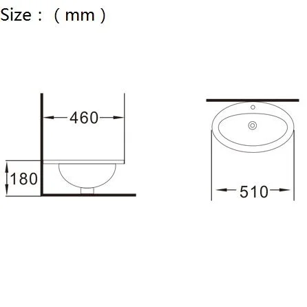 Type: Above counter basin; Material: Ceramic; Size:530x470x180mm; Above counter mounting