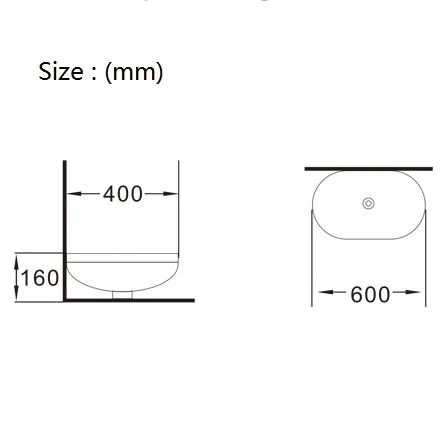 Type: Above counter basin; Material: Ceramic; Size:600x400x160mm; Above counter mounting