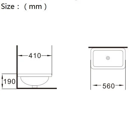 Type: Above counter basin; Material: Ceramic; Size:560x410x190mm; Above counter mounting