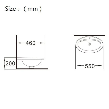 Type: Above counter basin; Material: Ceramic; Size:550x460x200mm; Above counter mounting