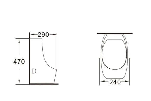 Type: Wall-hung urinal;Color: White; Material: Ceramic; Size:295x240x470mm; Outlet top flushing installation; Wall or Floor mounting;