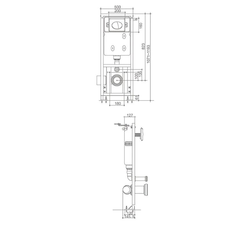 Type:Concealed water tank;Size:500x127x1071-1193mm; In wall installation.