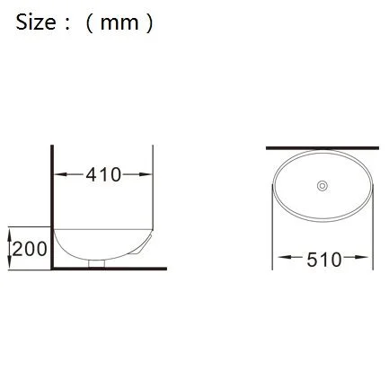 Type: Under counter basin; Material: Ceramic; Size:510x410x200mm; Under counter mounting