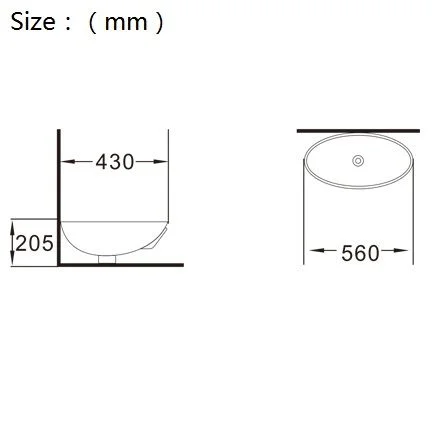 Type: Under counter basin; Material: Ceramic; Size:550x425x205mm; Under counter mounting
