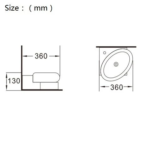 Type: Wall hung basin;Material: Ceramic; Size:360x360x130mm; Fixing to the wall