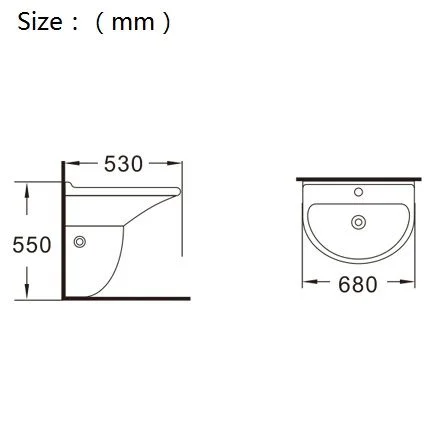 Type: Wall hung basin;Material: Ceramic; Size:680x530x550mm; Fixing to the wall