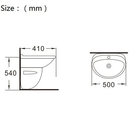 Type: Wall hung basin;Material: Ceramic; Size:500x410x540mm; Fixing to the wall