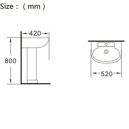 Type:Wash Basin with pedestal; Material: Ceramic; Size: 520x420x800mm; Installation: Fixing to the wall