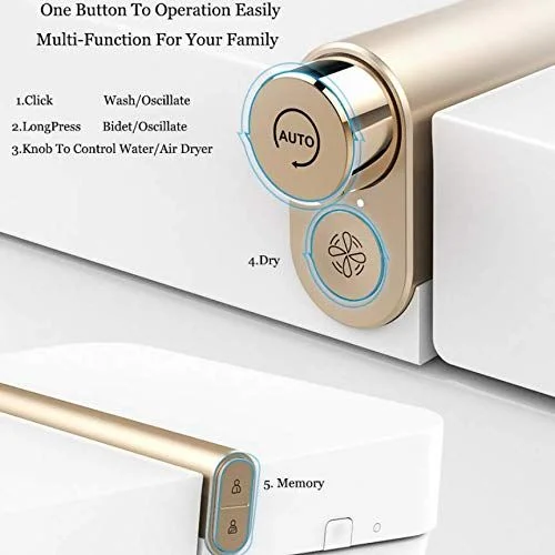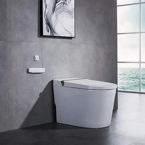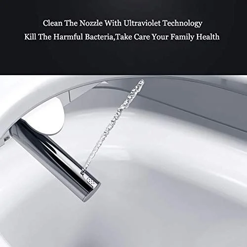 Color: White; Water tank: Available; Cover: PP; Spray lance: Stainless steel; Spray head: ABS; Water consumption: 4.2/6L ; Water efficiency rating:2nd ; Plug: CN plug. FUNCTIONS; 1.Hip wash 2.Bidet 3.Mixed air washing 4.Warm air 5.Auto deodorization 6.Oscillating wash 7.Seat heating and seat sensor 8.Anti-microbial seat 9.Nozzle anti-microbial 10.Nozzle self-cleaning 11.Nozzle washable 12.Quietly soft-close cover 13.Soft night lighting 14.Auto flushing 15.Nozzle position adjustment(5-gear) 16.Water temperature adjustment(5-gear) 17.Air temperature adjustment (3-gear) 18.Seat temperature adjustment(5-gear) 19.Water-pressure adjustment(5-gear) 20.Filter 21.Heating method: Instant heating 22.Ultraviolet disinfection 23.Pre-wet technology 24.The 2nd generation self -cleaning glaze 25. One button operation