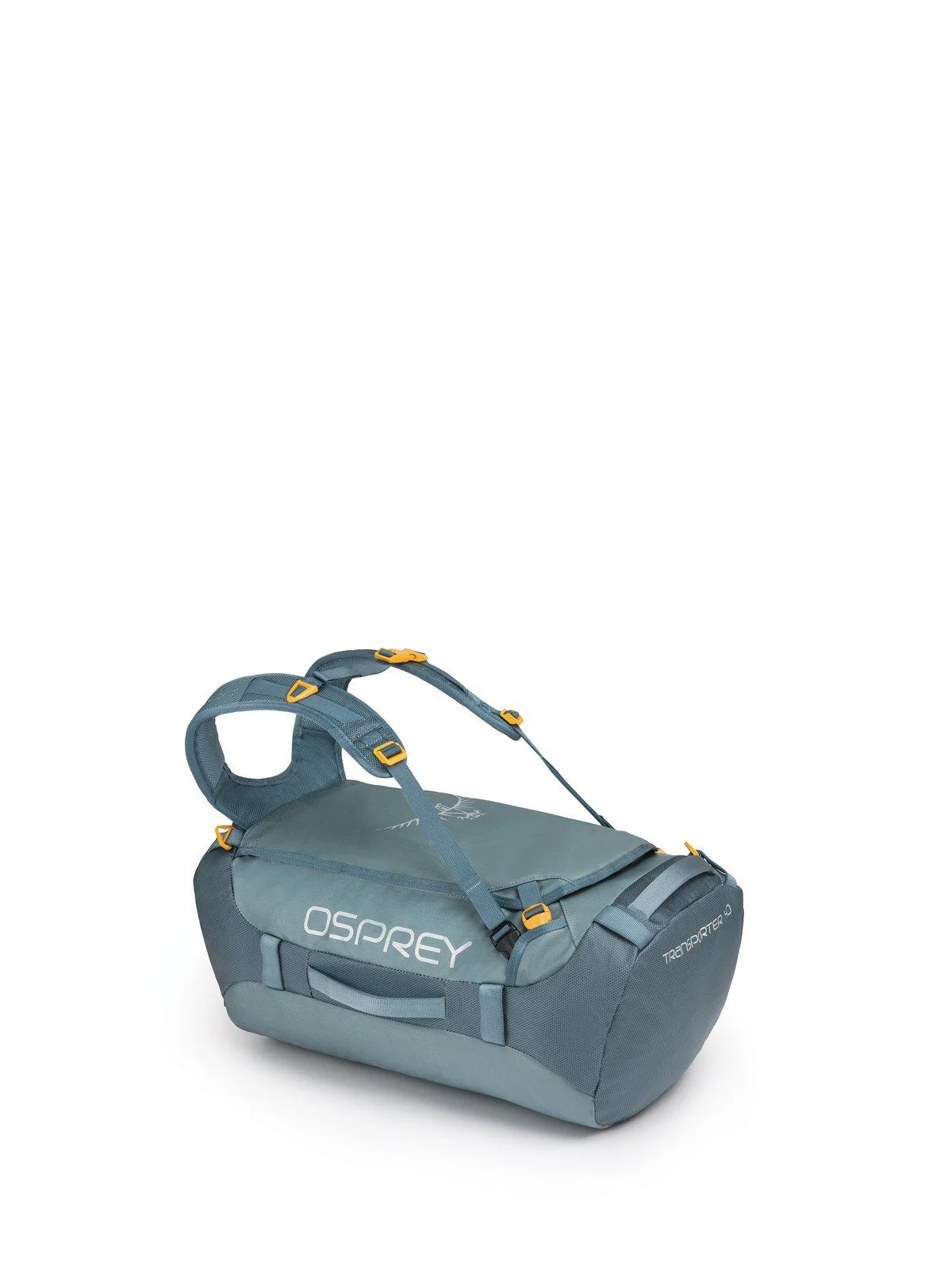 AdventureProof. Transporters are tough, high-quality duffels designed to withstand the rigours of adventure. Representing the pinnacle of performance in expedition-style duffel bags, Transporter features premium, highly durable materials, a water-resistant design and an extremely comfortable carrying system. Transporter 40 is the perfect companion on your adventures. Small enough to fit with standard EU Airline Carry-On measurements, yet big enough for your technical equipment, the Transporter 40 will quickly become a firm favourite. Very tough, TPU laminated nylon provides exceptional durability while remaining light and soft to the touch. The construction patterns and materials of Transporter have been chosen to provide a high level of weather resistance and the ability to withstand a lot of punishment. A yoked harness with sternum strap ensures that the load is carried comfortably. When not in use, the harness can be stowed inside a cleverly designed sleeve. Transporter 40 also features a detachable padded shoulder strap to provide another way to carry, perhaps when you"re already carrying another Osprey pack. External end pocket, a pocket under the lid and internal compression straps help to keep the contents organised, whilst an ID card holder ensures you"ll know which duffel is yours immediately. A large U-shaped opening gives easy access to your contents. Transporter 40 is a brilliant all-round travel pack, offering the performance and durability of an expedition pack with the comfort and innovative features that Osprey is well renowned for.