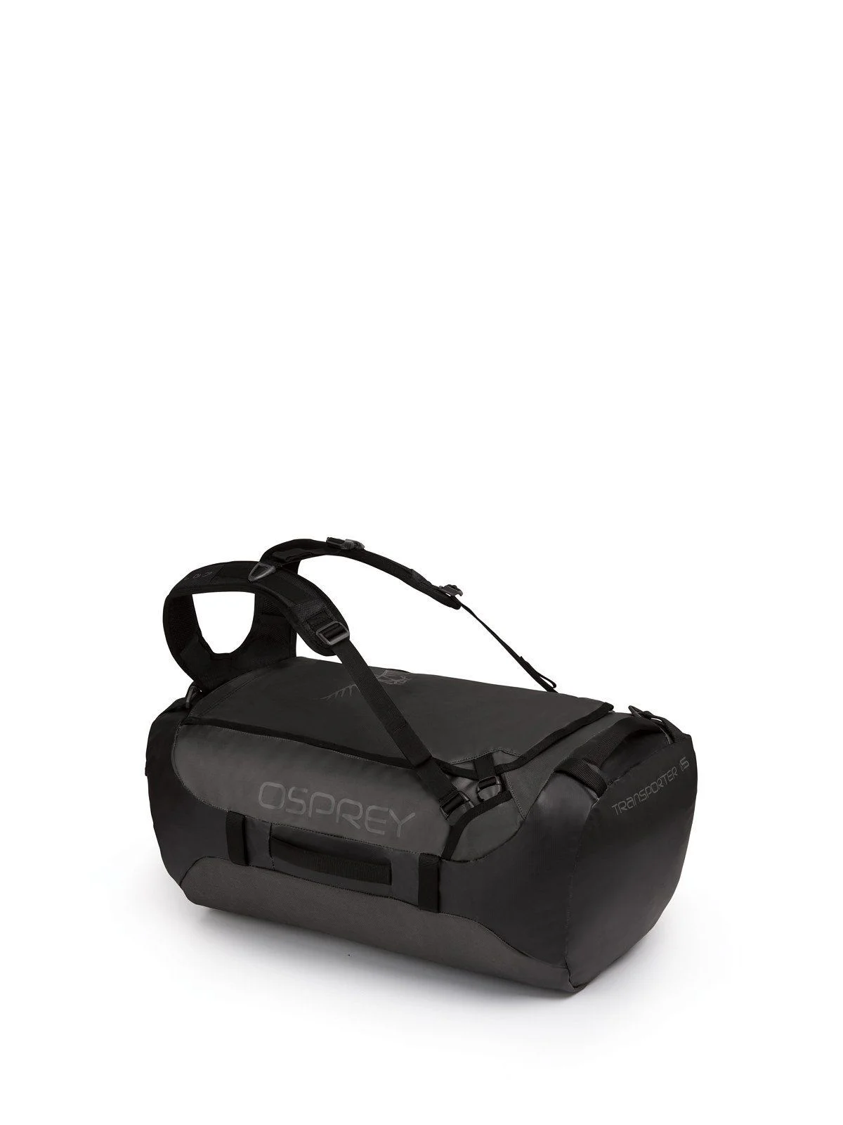 AdventureProof. Transporters are tough, high-quality duffels designed to withstand the rigours of adventure. Representing the pinnacle of performance in expedition-style duffel bags, Transporter features premium, highly durable materials, a water-resistant design and an extremely comfortable carrying system. Transporter 65 is the perfect companion on your adventures. Big enough for your technical equipment, the Transporter 65 will quickly become a firm favourite for throwing your kit into and heading out on an adventure. Very tough, TPU laminated nylon provides exceptional durability while remaining light and soft to the touch. The construction patterns and materials of Transporter have been chosen to provide a high level of weather resistance and the ability to withstand a lot of punishment. A yoked harness with sternum strap ensures that the load is carried comfortably. When not in use, the harness can be stowed inside a cleverly designed sleeve. Transporter 65 also features a detachable padded shoulder strap to provide another way to carry, perhaps when you"re already carrying another Osprey pack. External end pocket, a pocket under the lid and internal compression straps help to keep the contents organised, whilst an ID card holder ensures you"ll know which duffel is yours immediately. A large U-shaped opening gives easy access to your contents. Transporter 65 is a brilliant all-round travel pack, offering the performance and durability of an expedition pack with the comfort and innovative features that Osprey is well renowned for.