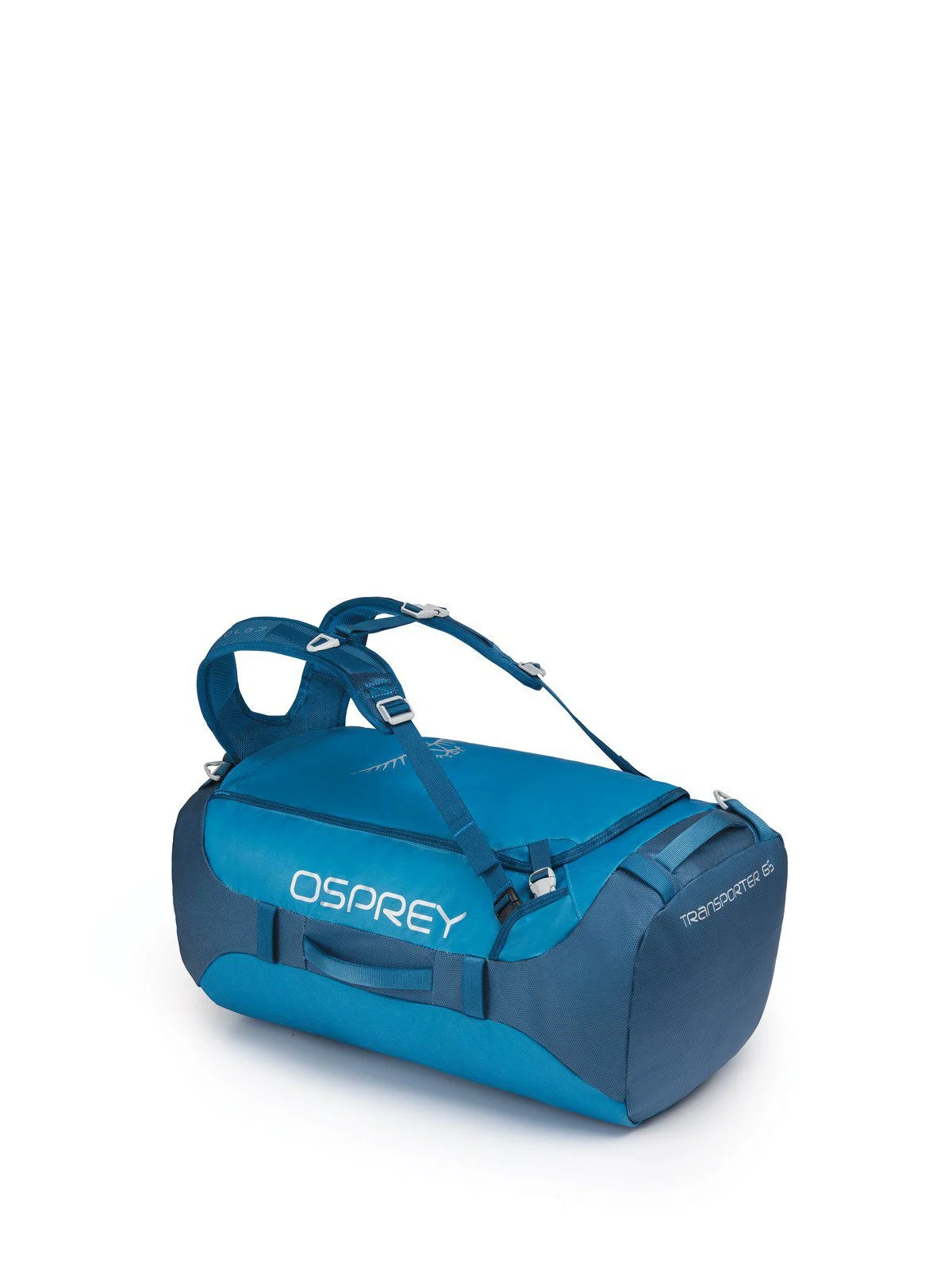 AdventureProof. Transporters are tough, high-quality duffels designed to withstand the rigours of adventure. Representing the pinnacle of performance in expedition-style duffel bags, Transporter features premium, highly durable materials, a water-resistant design and an extremely comfortable carrying system. Transporter 65 is the perfect companion on your adventures. Big enough for your technical equipment, the Transporter 65 will quickly become a firm favourite for throwing your kit into and heading out on an adventure. Very tough, TPU laminated nylon provides exceptional durability while remaining light and soft to the touch. The construction patterns and materials of Transporter have been chosen to provide a high level of weather resistance and the ability to withstand a lot of punishment. A yoked harness with sternum strap ensures that the load is carried comfortably. When not in use, the harness can be stowed inside a cleverly designed sleeve. Transporter 65 also features a detachable padded shoulder strap to provide another way to carry, perhaps when you"re already carrying another Osprey pack. External end pocket, a pocket under the lid and internal compression straps help to keep the contents organised, whilst an ID card holder ensures you"ll know which duffel is yours immediately. A large U-shaped opening gives easy access to your contents. Transporter 65 is a brilliant all-round travel pack, offering the performance and durability of an expedition pack with the comfort and innovative features that Osprey is well renowned for.