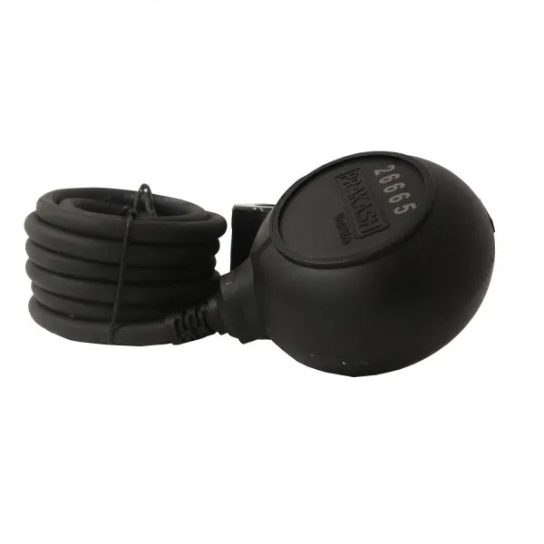 Float Switch is connected to an electric Pump through an electric cable, is used for the auto-control and no water protection of the water tower or water pool. Technical Specifications: Rated Voltage: 220 – 240V AC Rated Current: 10 (4) A Frequency: 50 HZ / 60 HZ Temperature: 60° C Protection Class: IP 67 Installation: Fix the counterweight on the power cable to control water level. Connect the electrical cable with the electrical pump/Panel and then fix it inside the water tank. The length of cable section between the fixation point of the device & the device body determines the water level. The terminal of the electrical cable shall never be immersed into water during installation.
