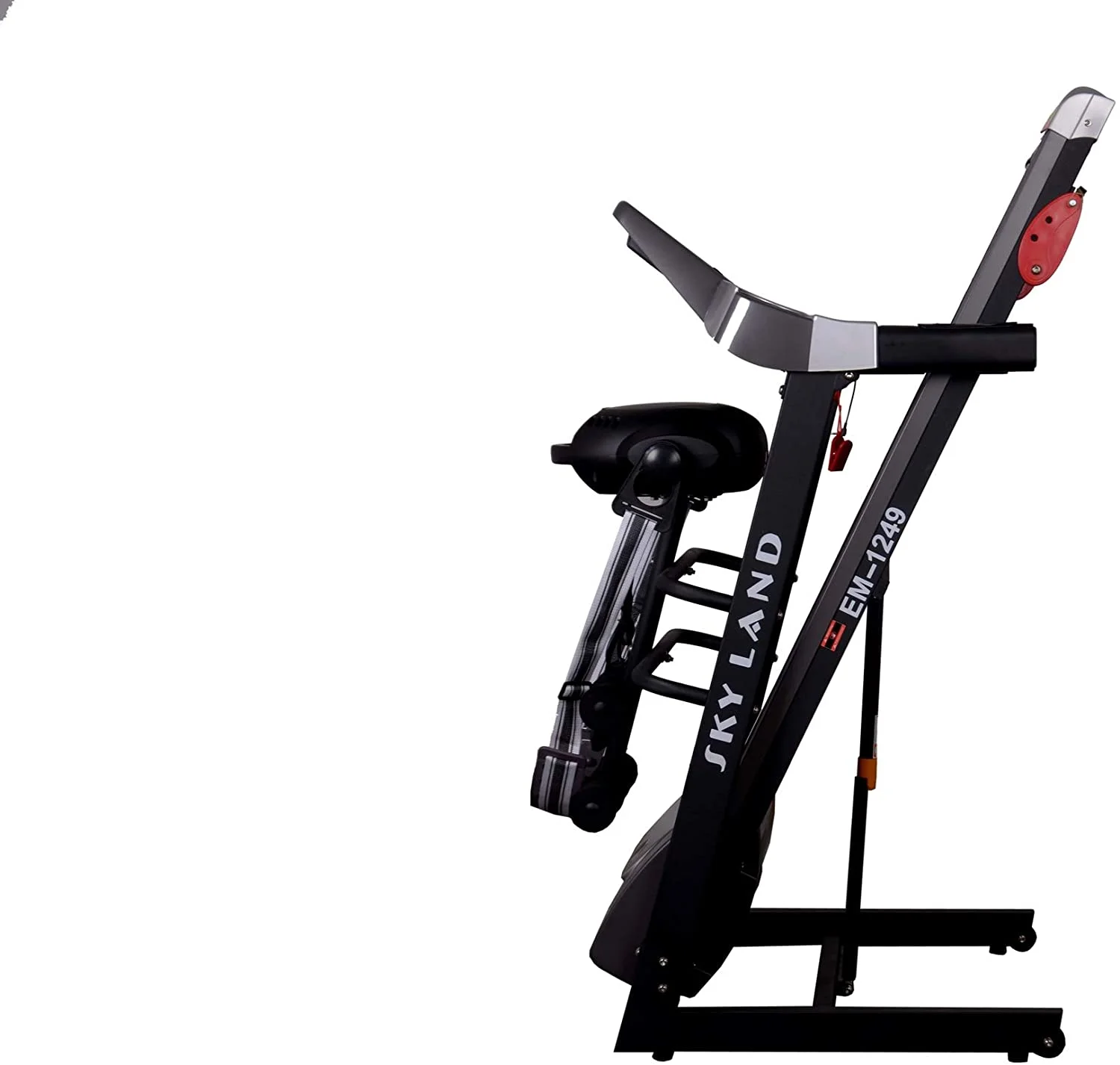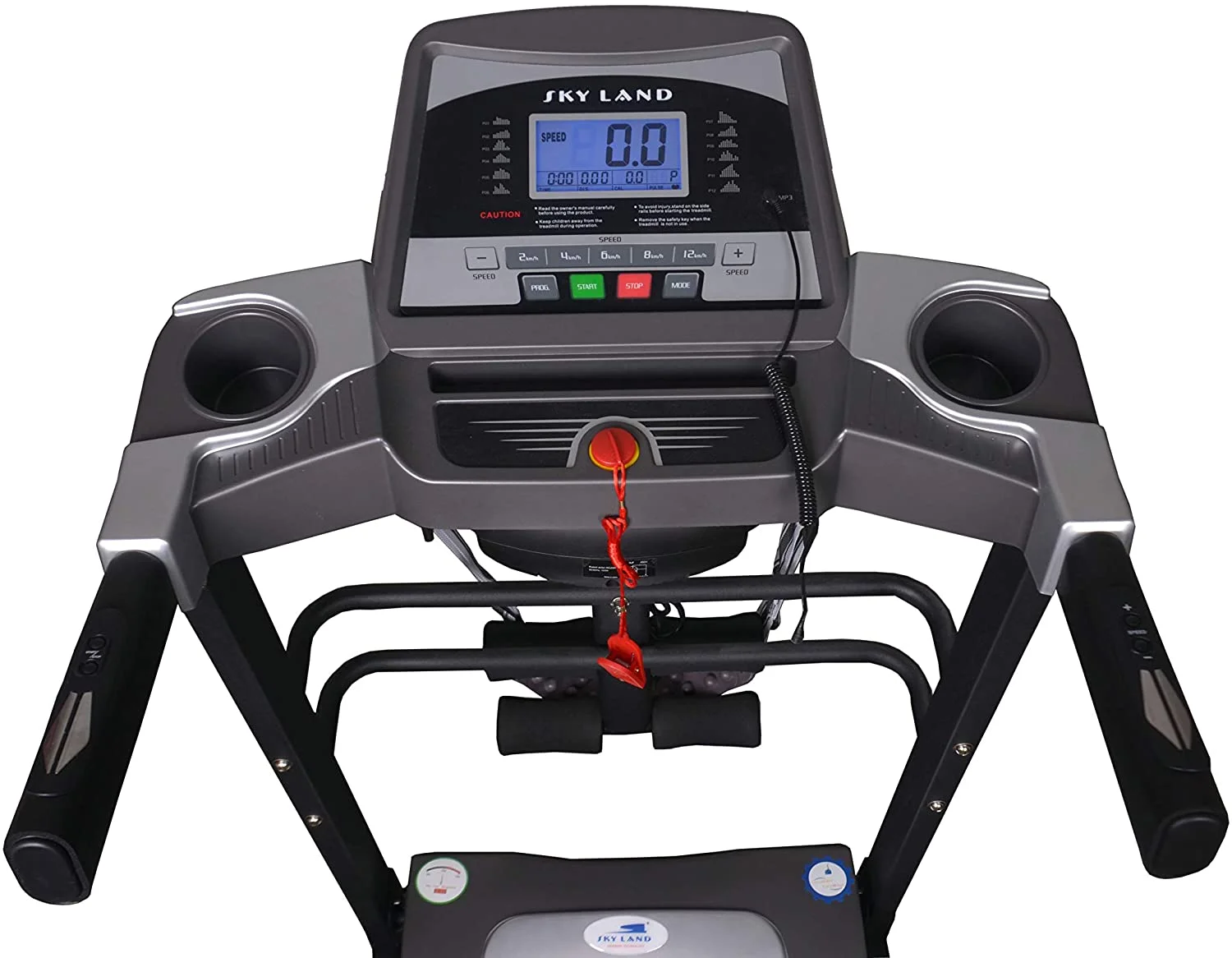 Treadmill Type: Digital Item Weight: 59 Kilograms Brand Name: SkyLand Color Black Style Exercise Display Size 5 Inches Packed Size 78*69*145cm Weight 59 Kilograms Material Type Steel PVC Horsepower 2 Horsepower Season Year-round Sport Digital Included Components Catalog, Tool kit, Lubrication Oil Brand SKY LAND Department Unisex Adult Manufacturer Skyland Item model number EM-1249 Product Dimensions 29.5 x 159 x 76.5 cm; 52 Kilograms Everything you need to reach your fitness goals lives on the skyland treadmill. The space saver design allows you to fold your machine up when you re done for more convenient storage. Product Feature : Its with 3 maual incline. Features it comes with massager, DC Motor: 2.0 HP, Speed Range: 0.8 12.0 km/h Belt with grass style Running surface: 1200x400mmComputer with 12 programs : LCD display with blue backlight With MP3. The Volts for the treadmill 220