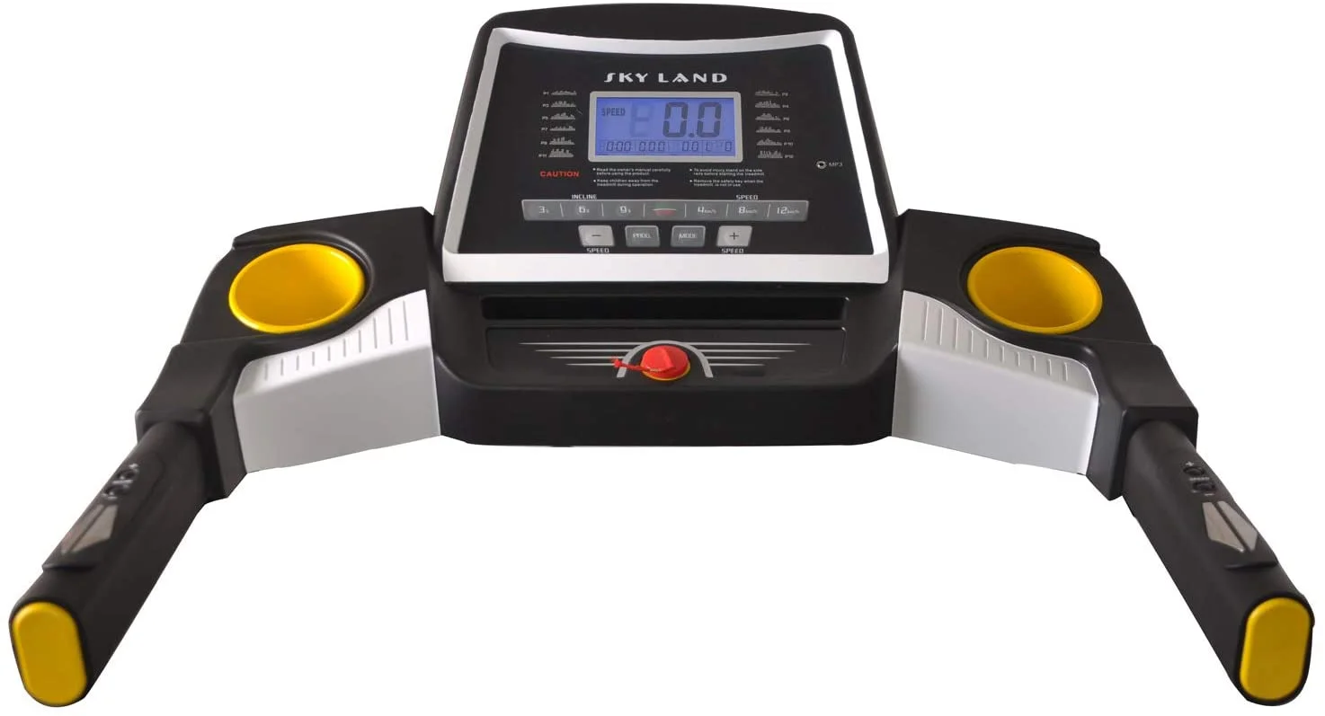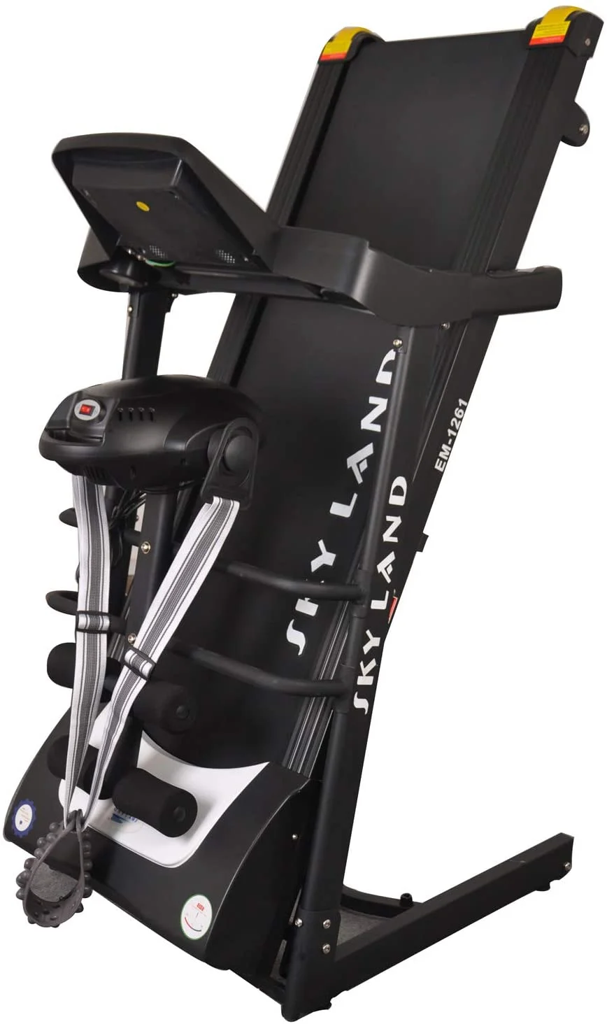 DC Motor: 2 HP Capacity: 110 kgs Speed: 1-14KM/H 12% Auto Incline Belt: 420*2500mm With 12 computer programs Gross Weight: 59 Kg Net 5'LCD display With blue Backlight, massager and MP3 Color Black Sport Digital Brand SKY LAND maximum weight capacity 110 Kilograms Manufacturer SkyLand Item model number EM-1261 Product Dimensions 31 x 169 x 75 cm; 59.01 Kilograms DC Motor: 2 HP Capacity: 110 kgs Speed: 1-14KM/H 12% Auto Incline Belt: 420*2500mm With 12 computer programs Gross Weight: 59 Kg Net Weight: 54 Kg 5'LCD display With blue Backlight, massager and MP3