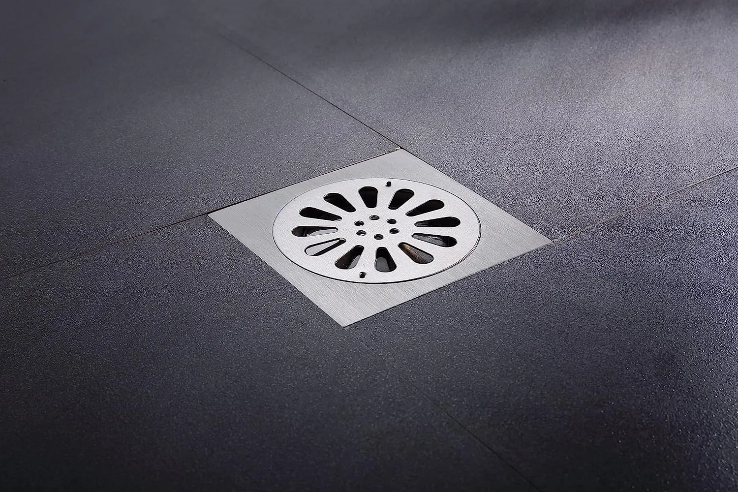 Square Shower Floor Drain with Removable Round Pattern Cover,15 * 15CM Rotary Type Thickened Stainless Steel Brushed Nicke